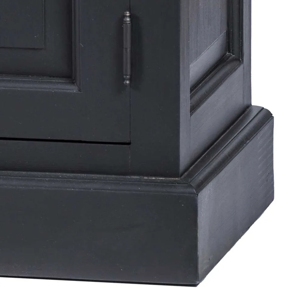 - Gefertigt aus MDF (Füllungen, Deckplatte, Seiten) und Mahagoni Massivholz (Rahmen, Sockel)