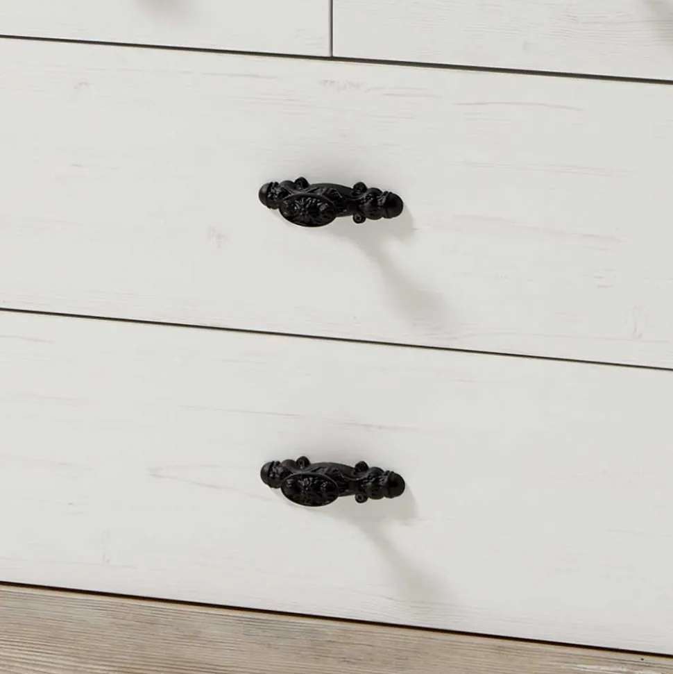 - Schwarze Metallgriffe mit antik anmutenden Verzierungen