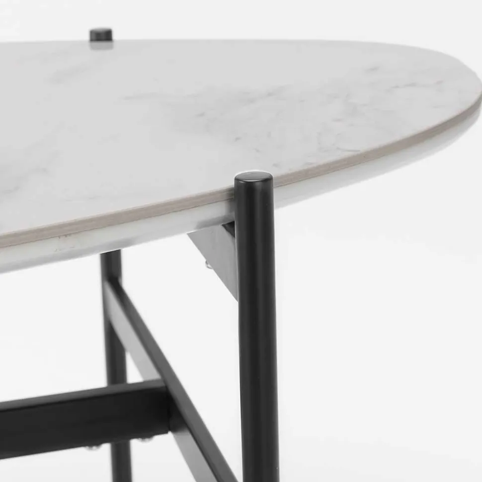 - Tischplatte aus solider MDF, beschichtet mit einer Keramikauflage in hellgrauer und weißer Marmoroptik, Plattenstärke ca. 2,8 cm