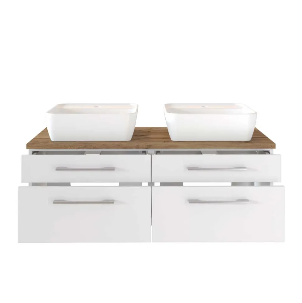 - Eleganter Bad Unterbeckenschrank in Weiß und Wildeichefarben