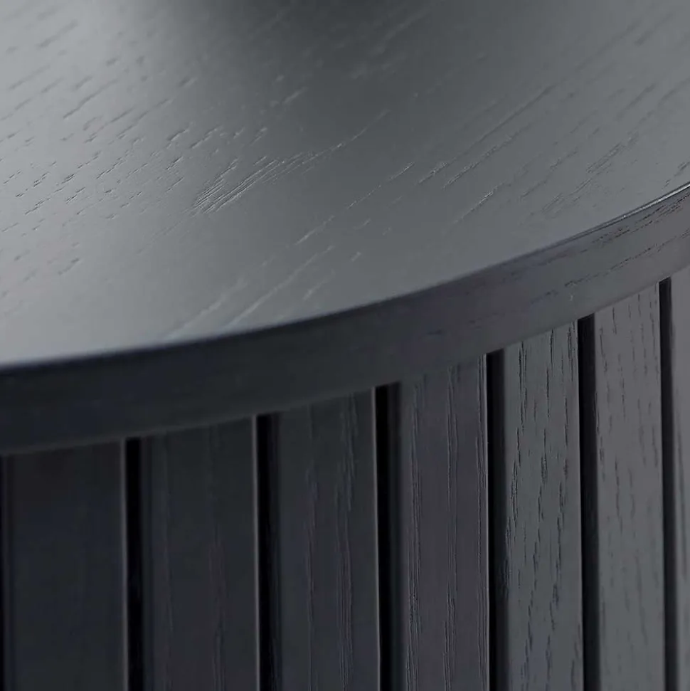 Mit einer Breite von 120 cm, einer Höhe von 45 cm und einer Tiefe von 60 cm bietet der „Venutura“ Couchtisch ausreichend Platz für all Ihre Bedürfnisse. Die ansprechend ovale Form sorgt dafür, dass der Tisch in jedem Raum harmonisch wirkt, sei es im Home-Office, im Jugendzimmer oder im Wohnzimmer. Unter der Tischplatte befindet sich zusätzlicher Stauraum, der mit zwei leichtlaufenden Schiebetüren ausgestattet ist. Hier können Sie Bücher, Zeitschriften oder Fernbedienungen stilvoll verstauen. Der Korpus unter der Tischplatte besticht zudem durch seine plastische Struktur, die dem Tisch eine besondere Tiefe verleiht.