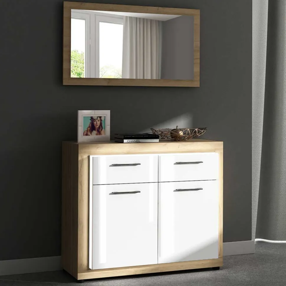 - Moderne Kommode in Wildeichefarben und Weiß Hochglanz
