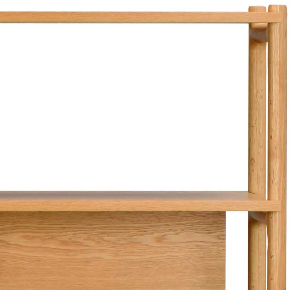 Genießen Sie die Langlebigkeit und Widerstandsfähigkeit von massivem Eichenholz. Dieses Material ist nicht nur bekannt für seine beeindruckende Festigkeit und Haltbarkeit, sondern auch für die warme, einladende Ausstrahlung, die es in jeden Raum bringt. Der Rahmen und das Fußgestell des Regals „Esman“ aus massiver Eiche garantieren Stabilität und eine hohe Lebensdauer.