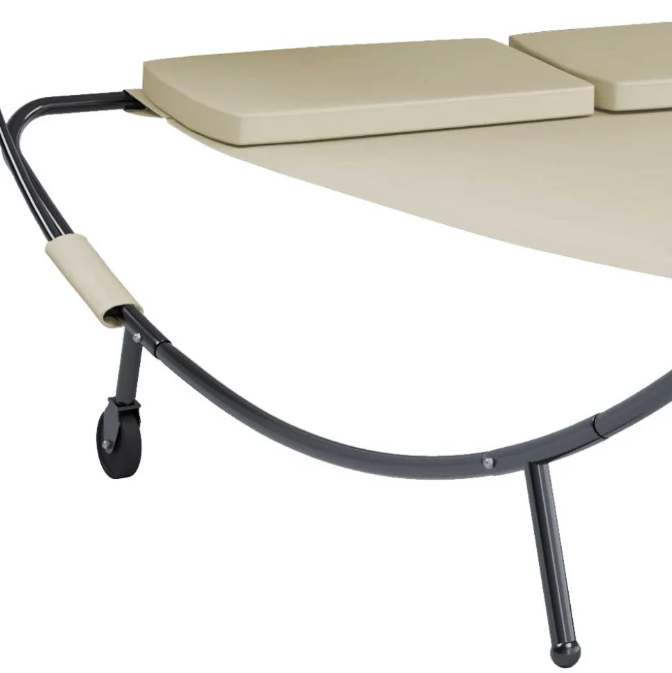- Aus robustem Metall besteht das Untergestell der Doppelliege