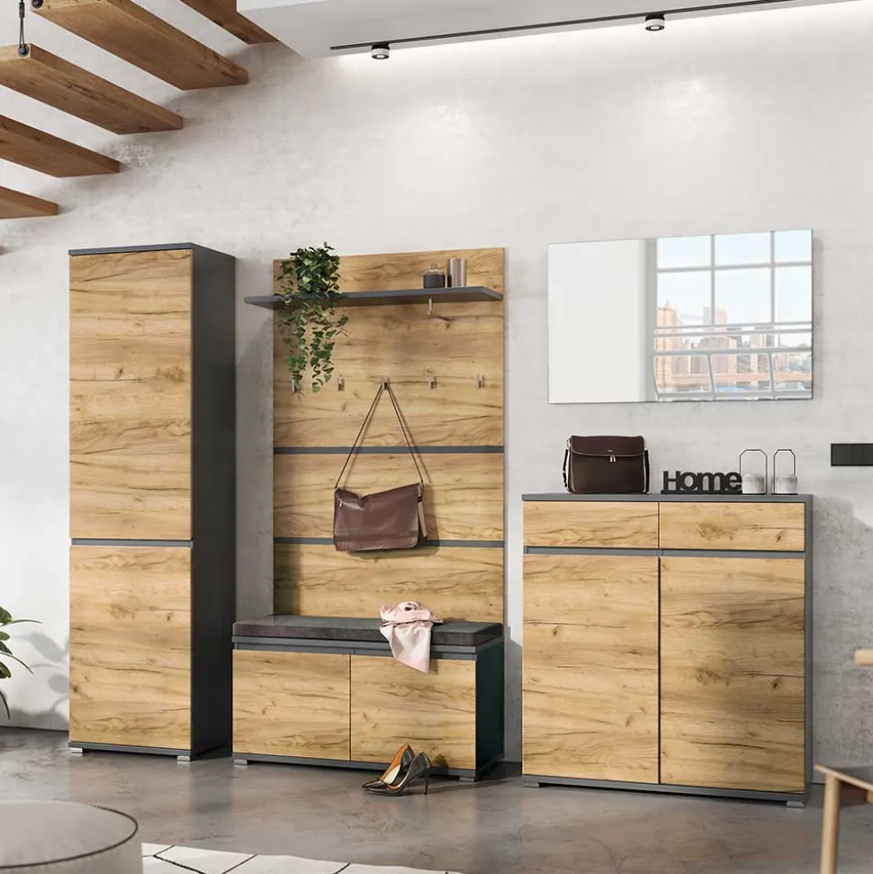 - Modernes Garderobenmöbel Set in Wildeichefarben und Anthrazit