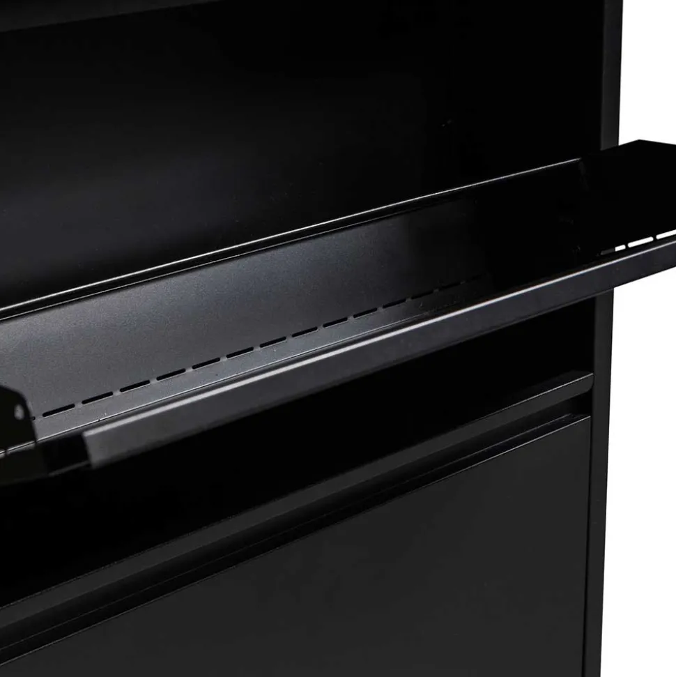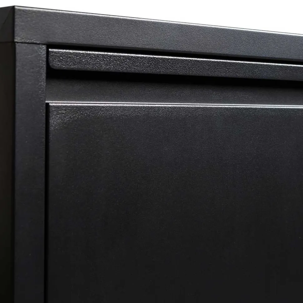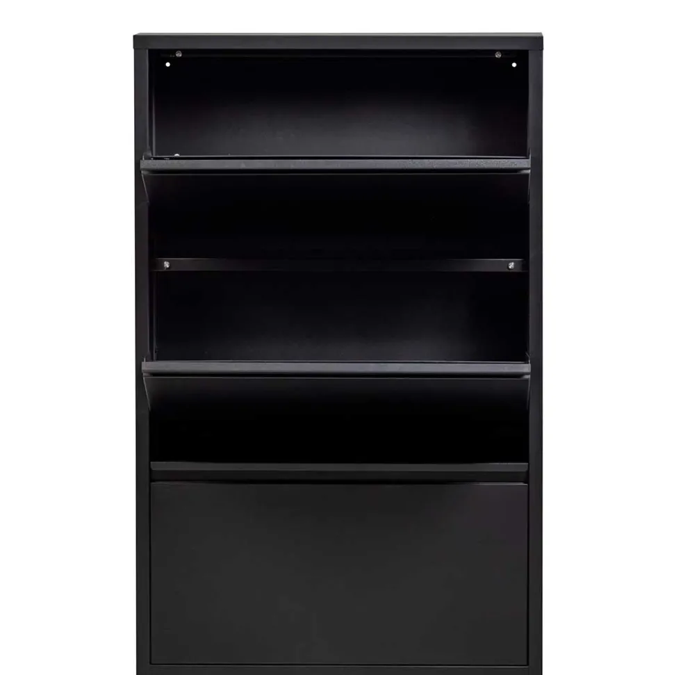 Gefertigt aus langlebigem Metall, überzeugt der Schuhschrank durch seine Stabilität und Widerstandsfähigkeit. Die pulverbeschichtete Oberfläche macht ihn besonders pflegeleicht und schützt ihn zuverlässig vor Kratzern und Abnutzungsspuren. Die dezenten Griffmulden sorgen für eine komfortable Handhabung und unterstreichen das klare, reduzierte Design.