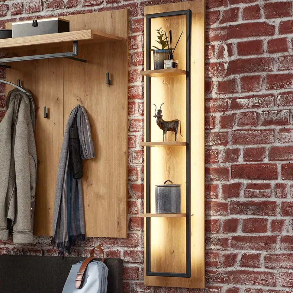 - Exklusives Wandregal in Wildeichefarben und Dunkelgrau