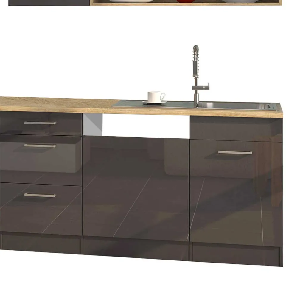 Produziert in Deutschland und nach hohen Qualitätsstandards gefertigt, überzeugt die Küchenzeile „Bozenia“ mit einem modernen und zeitgemäßen Erscheinungsbild. Die elegante Farbkombination aus Grau Hochglanz und warmer Sonoma Eiche in Holzoptik bringt eine moderne, wohnliche Atmosphäre in jede Küche. Die kontrastreiche Gestaltung mit klaren Linien unterstreicht das durchdachte Design und fügt sich perfekt in verschiedene Einrichtungsstile – ob urban, minimalistisch oder gemütlich-natürlich.
