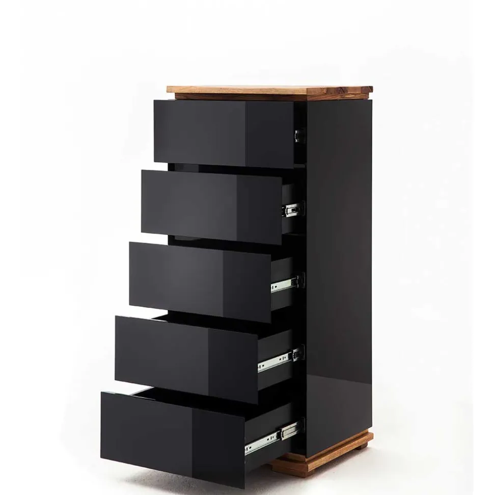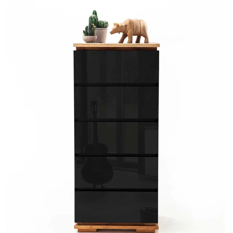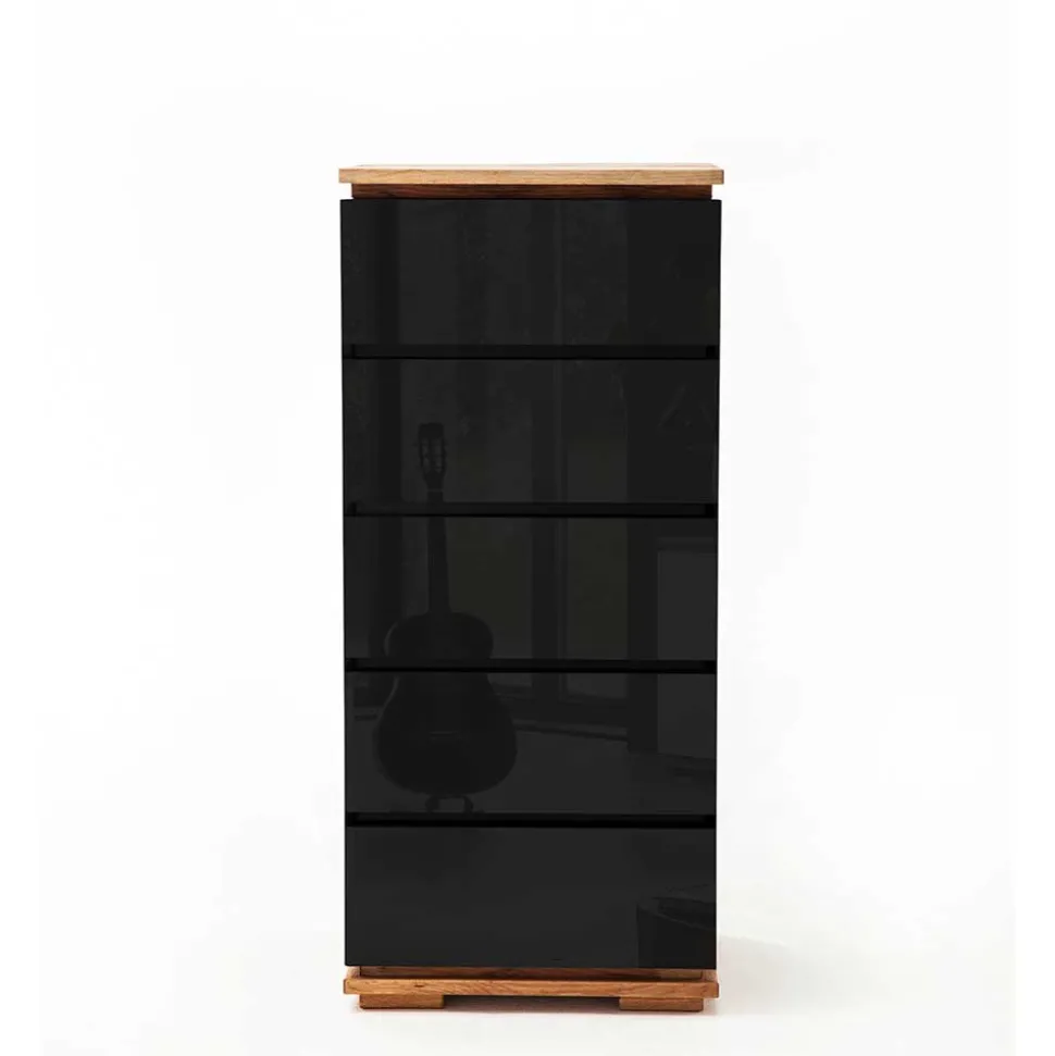 - Elegante Hochkommode in Schwarz Hochglanz und Eichefarben
