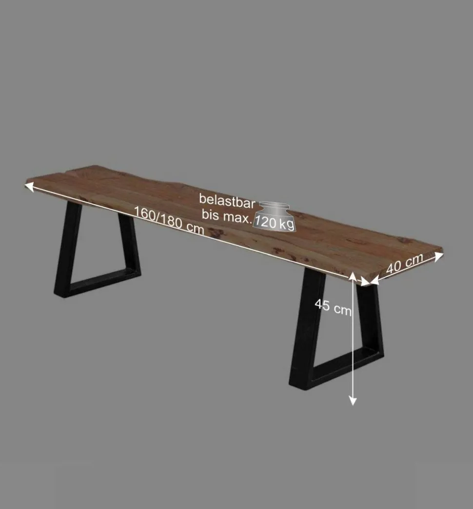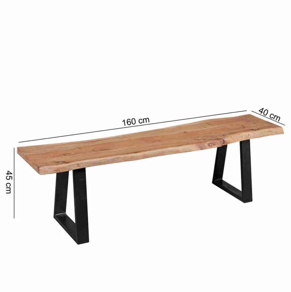 Hergestellt aus massivem Akazienholz, bekannt für seine Haltbarkeit und schönen, auffälligen Maserungen, garantiert die Baumkantenbank „Lussina“ Langlebigkeit und Standhaftigkeit. Akazienholz ist zudem resistent gegen Schädlinge und Witterungseinflüsse, was es ideal für hochwertige Möbelstücke macht. Die Kombination mit dem schwarz lackierten Bügelgestell aus Metall verstärkt nicht nur die Stabilität, sondern fügt auch einen modernen Touch hinzu.