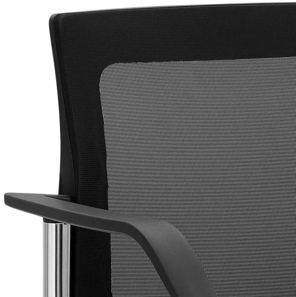 Der Netzrücken aus Meshgewebe (100 % Polyester) in elegantem Schwarz bietet nicht nur einen modernen Look, sondern auch praktische Vorteile. Er sorgt für eine optimale Luftzirkulation und verhindert unangenehme Wärmestauung, sodass Sie auch an warmen Tagen entspannt sitzen können. Die bequem abgeschrägten Armlehnen bieten zusätzlichen Komfort und laden zum Entspannen ein.