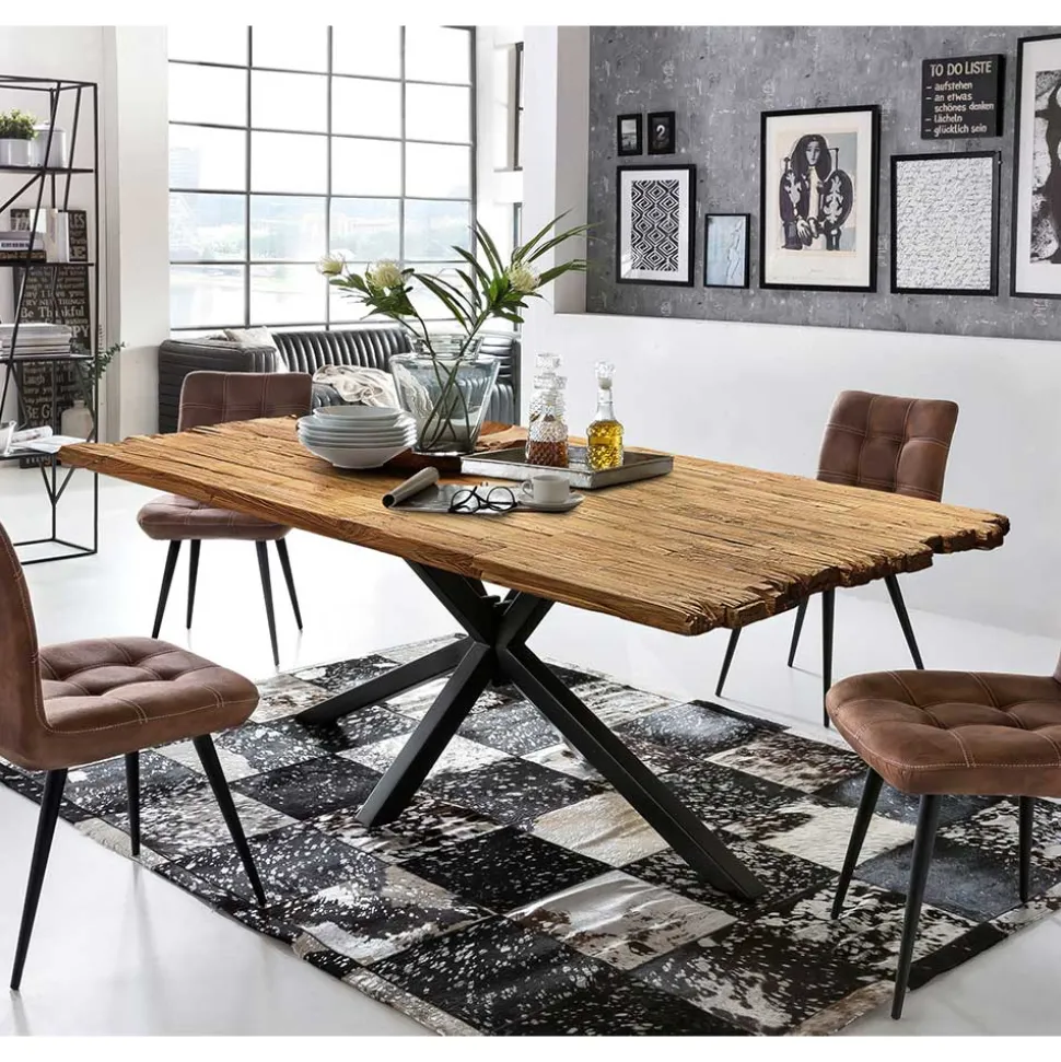 - Topaktueller Esstisch in Teak Naturfarben und Antikschwarz