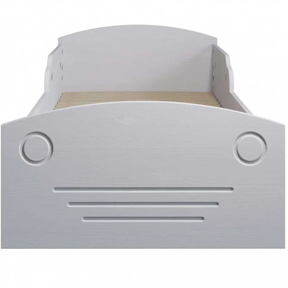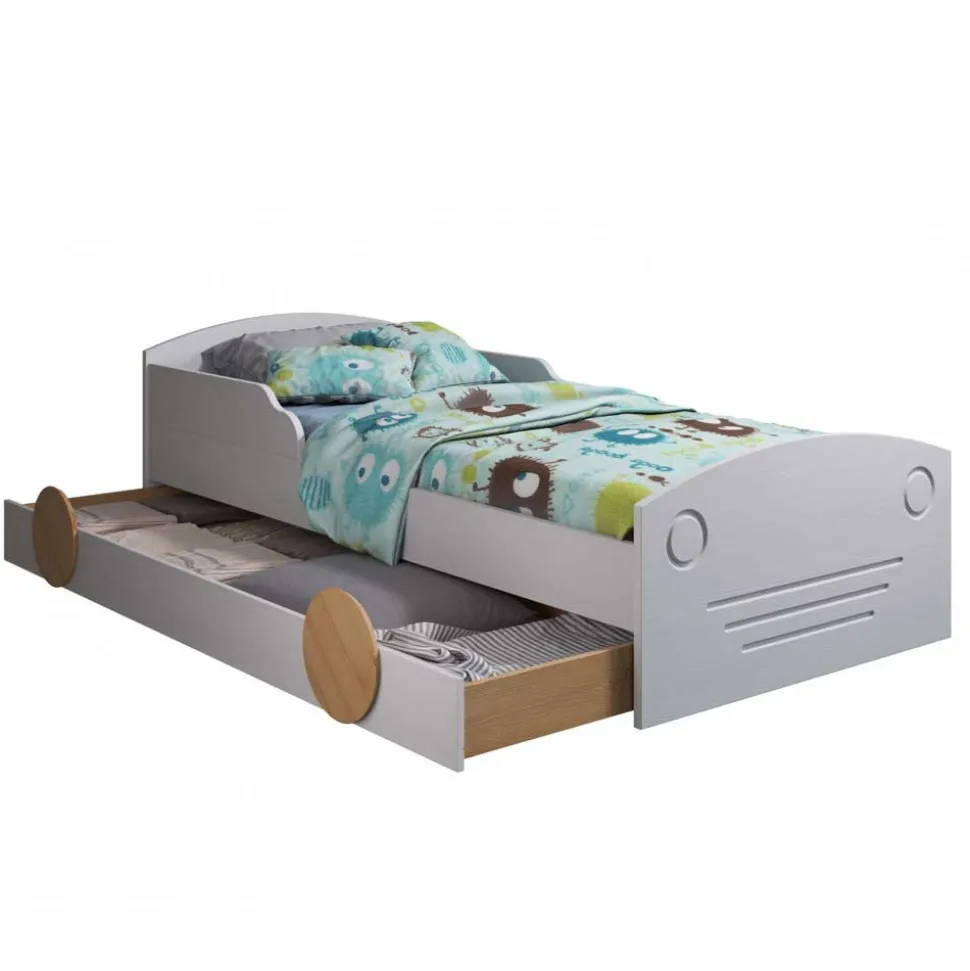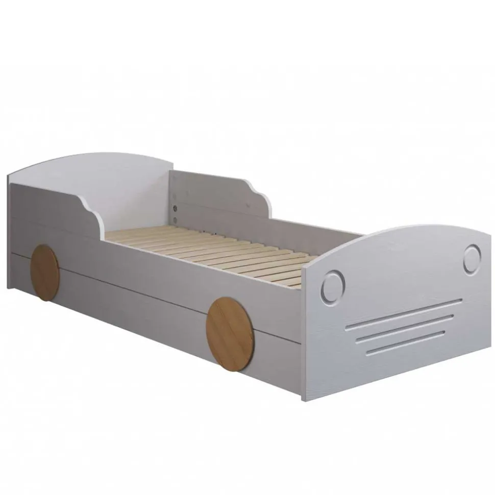 Autobett mit Bettkasten in Weiß und Kiefer - Vision