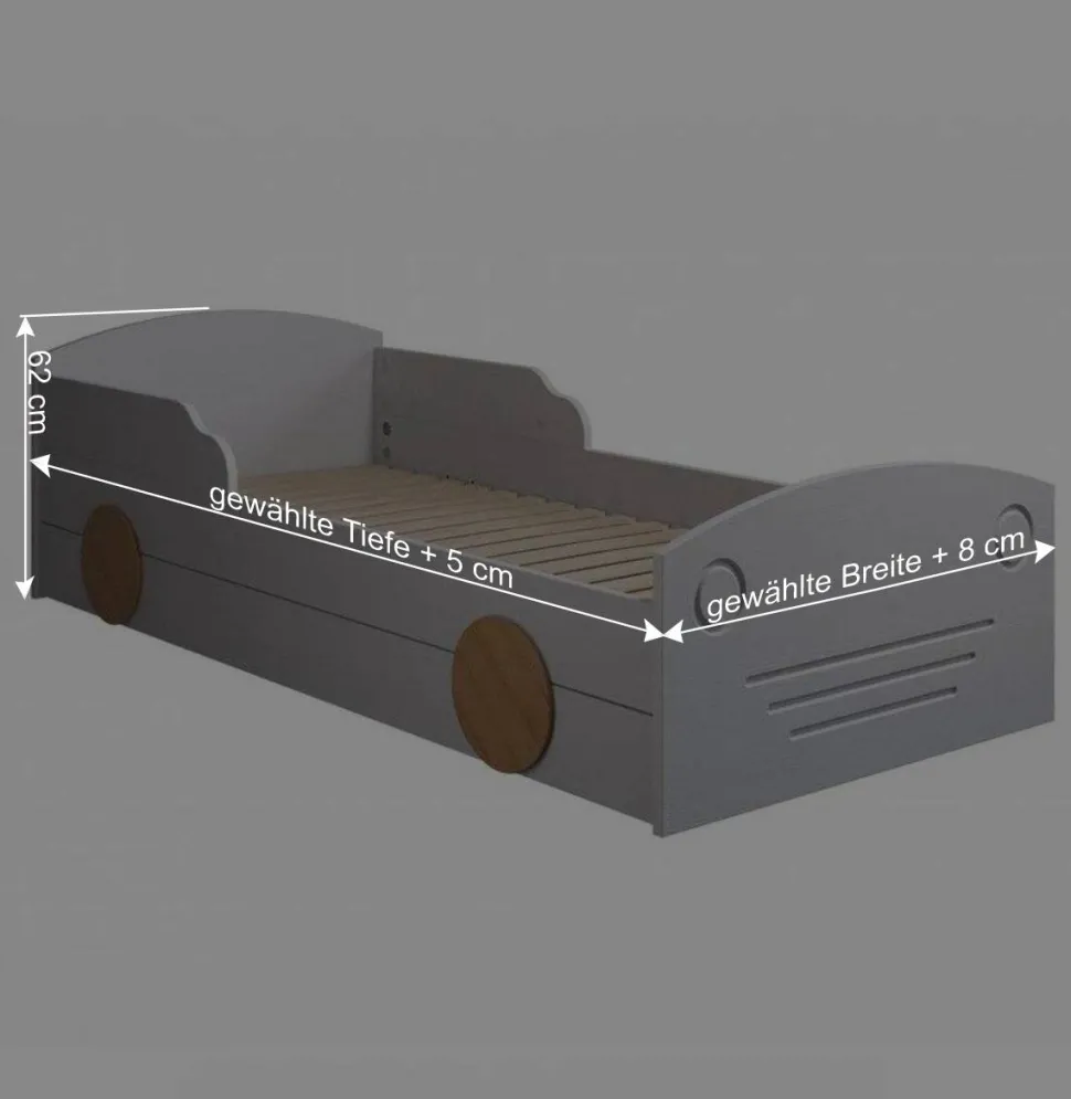 Autobett mit Bettkasten in Weiß und Kiefer – Vision