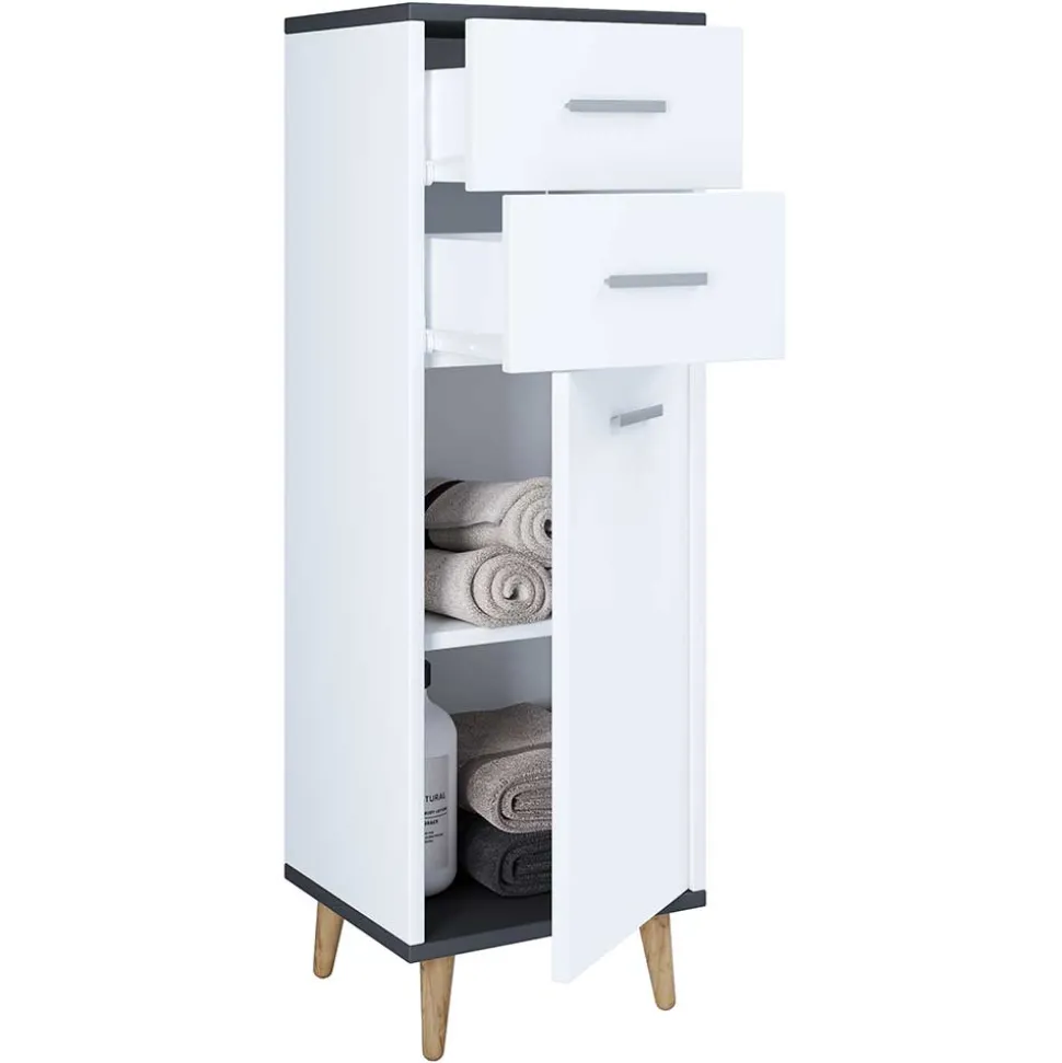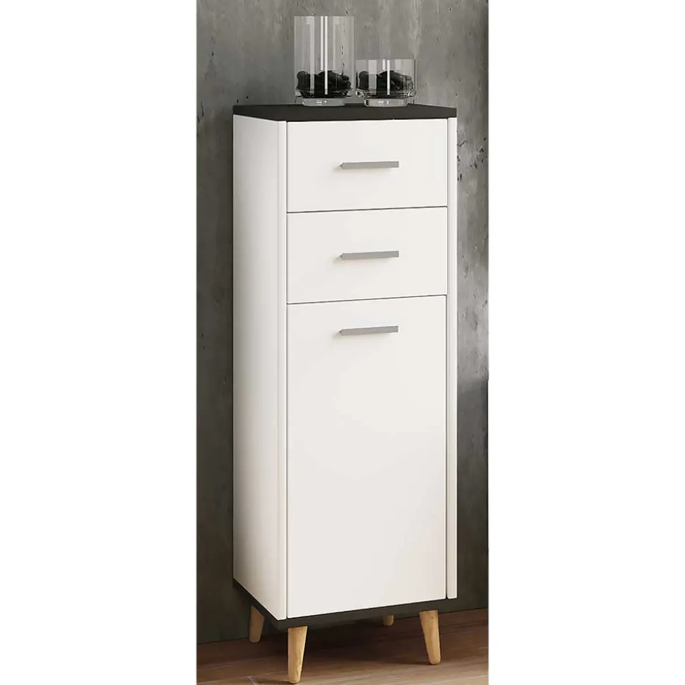 - Schmaler Bad Midischrank in Weiß, Anthrazit und Wildeichefarben