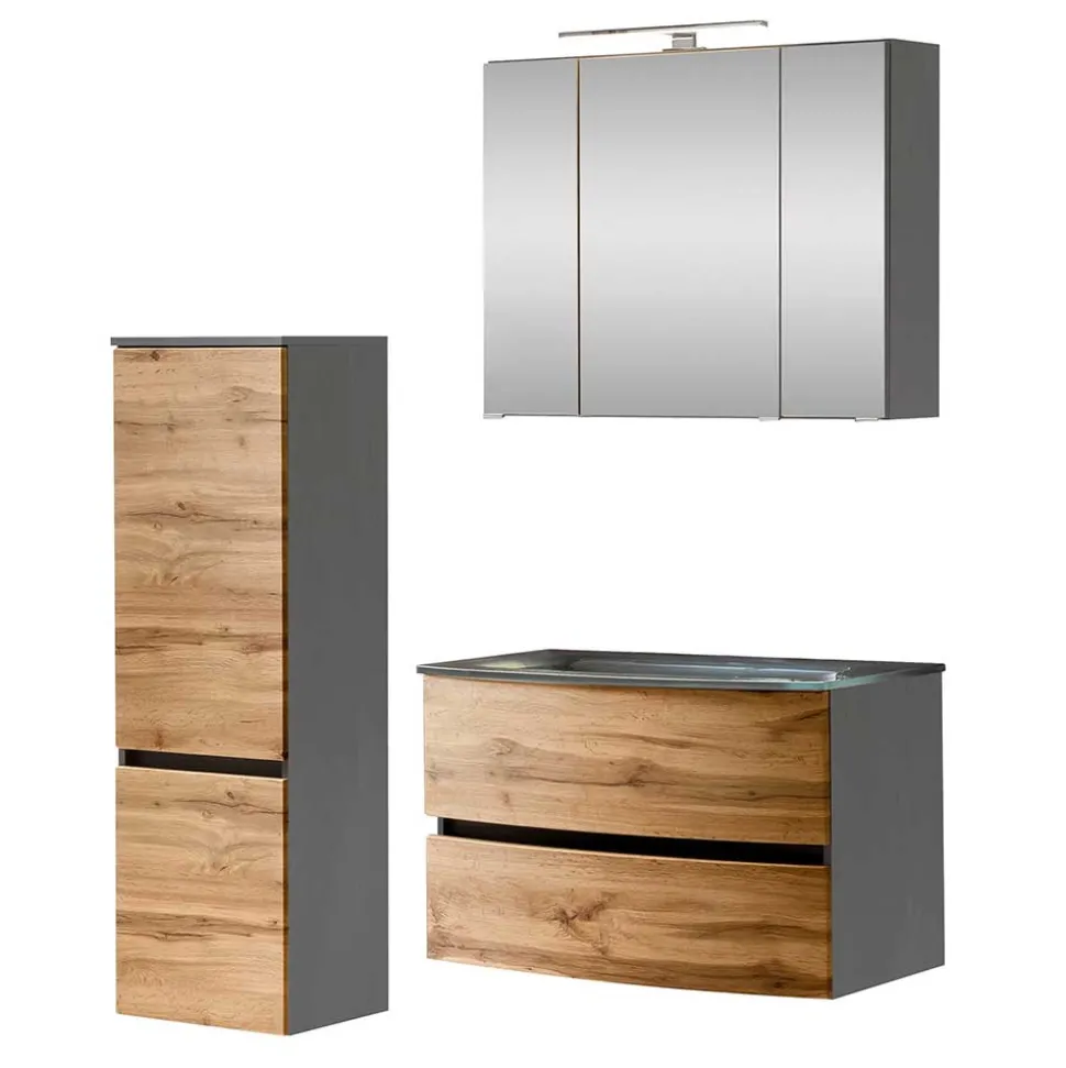 - Topaktuelles Badmöbel Set in Wildeichefarben und Dunkelgrau
