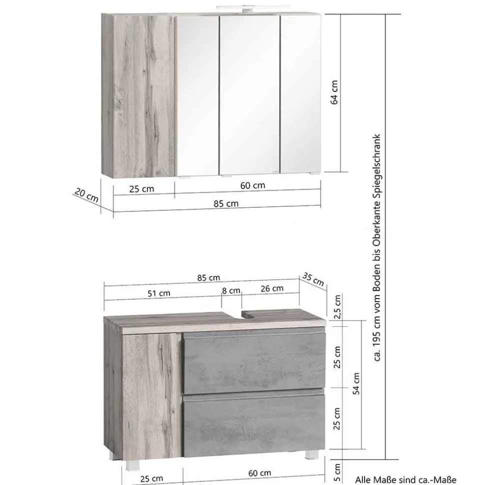 Mit dem Badmöbel-Set „Eight“ zieht ein ganz besonderes Ensemble in Ihr Zuhause ein. Bestehend aus einem Hochschrank, einem Hängeschrank, einem Unterschrank, einem Spiegelschrank und einem Waschbeckenunterschrank vereinen sich hier fünf durchdachte Möbelstücke zu einem harmonischen Gesamtbild. Gemeinsam schaffen sie ein Badezimmer, das sowohl stilistisch überzeugt als auch im Alltag höchste Funktionalität bietet. In der Farbkombination aus mattweiß und Wildeichefarben entsteht eine einladende Mischung aus Klarheit und Wärme, die jedes Bad in einen Ort der Ruhe und Erholung verwandelt.