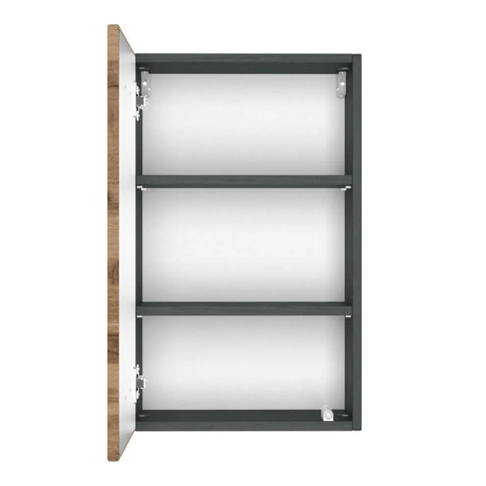 - Kratzfeste Oberflächen, Front in Holzoptik Wildeiche foliert, Korpus in Dunkelgrau melaminbeschichtet