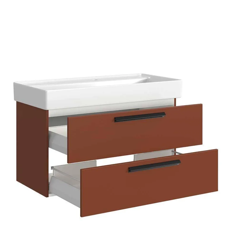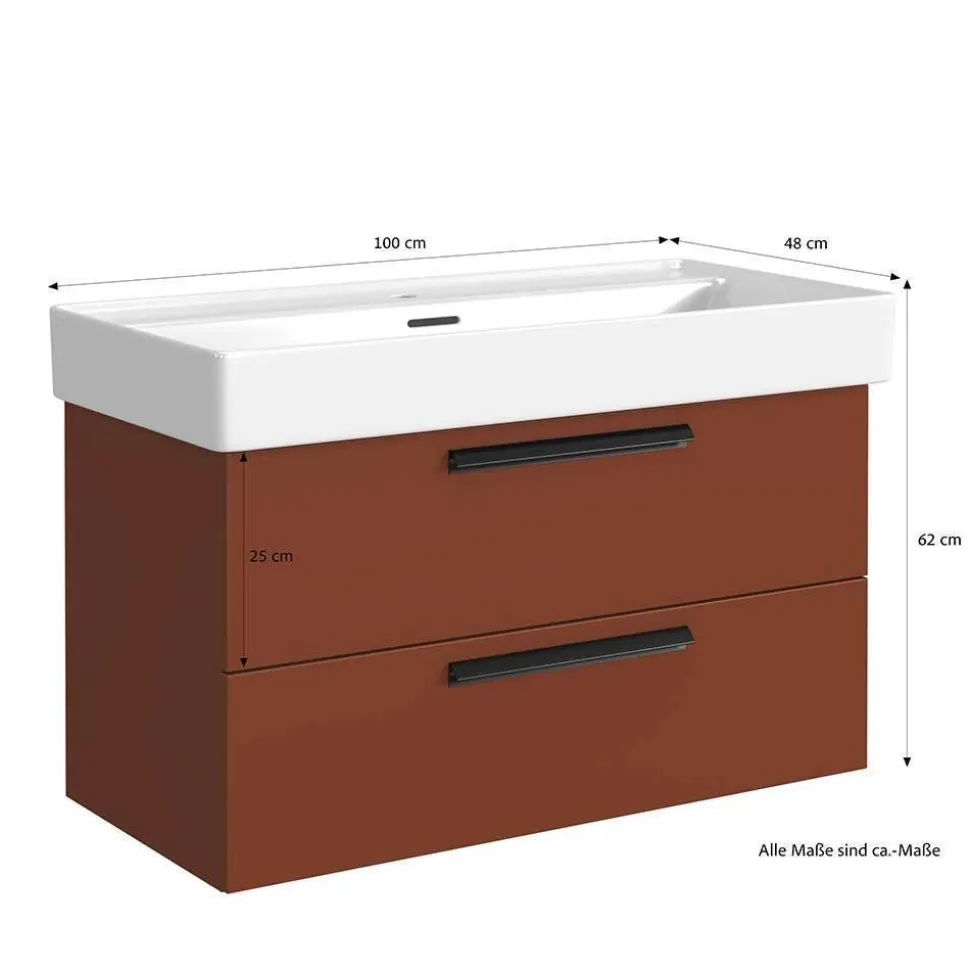 Badezimmer Einrichtung Möbelset „Exeler“ – Dunkelrot trifft auf Funktionalität