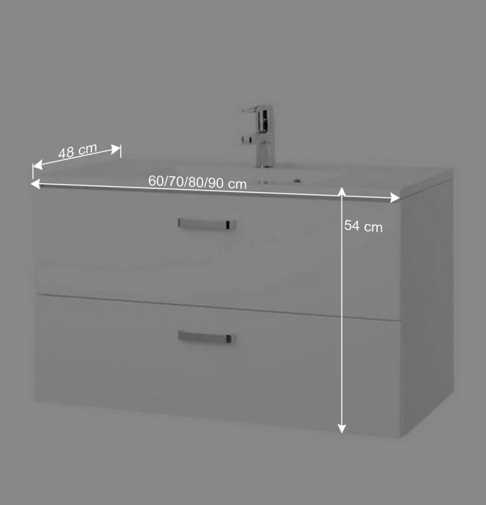 - Maße HxT: 54×48 cm Wahlweise 60, 70, 80 oder 90 cm breit