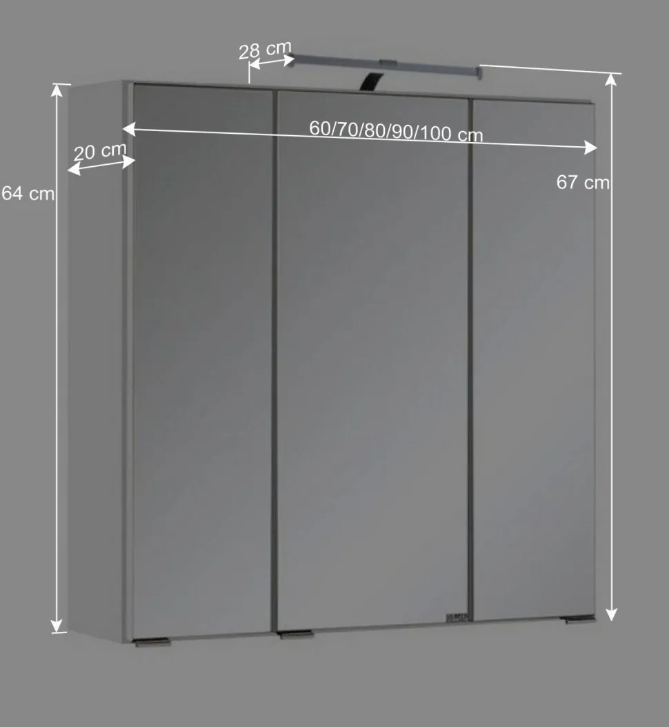 - Maße mit Aufbauleuchte: BxHxT: 60/70/80/90/100x67x28 cm