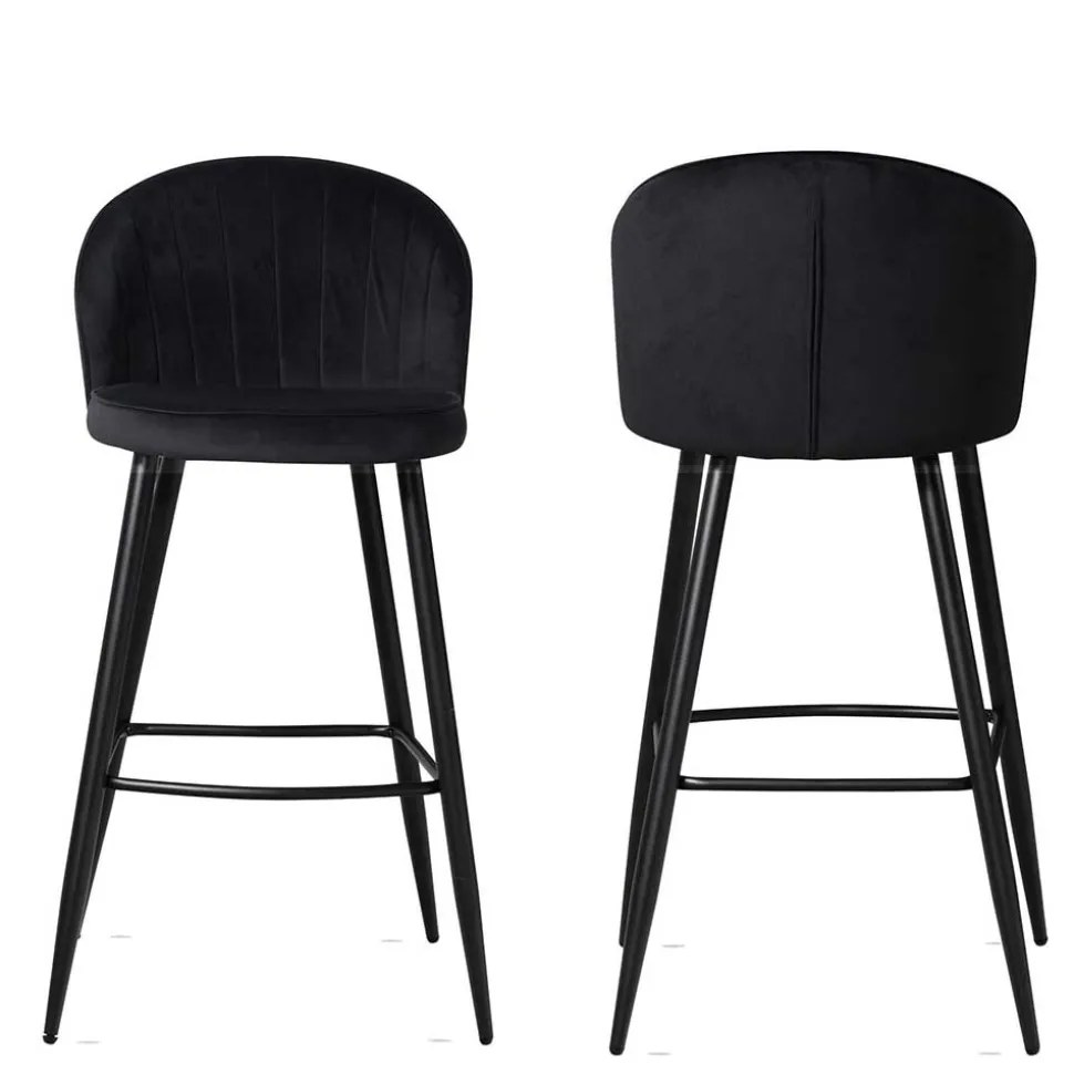 Der Bezug aus samtweichem Stoff (100 % Polyester) sorgt nicht nur für eine angenehme Haptik, sondern auch für eine pflegeleichte Handhabung im Alltag. Die Polsterung aus Schaumstoff lädt zu langen Abenden am Tisch oder an der Bar ein, während die ergonomisch geformte Schale des Stuhls den Körper stützt und für bestmöglichen Komfort sorgt. Das stabile, lackierte Metallgestell bietet nicht nur die nötige Robustheit, sondern garantiert auch eine lange Lebensdauer. Eine praktische Fußablage macht das Sitzen auf diesem Barstuhl noch bequemer.