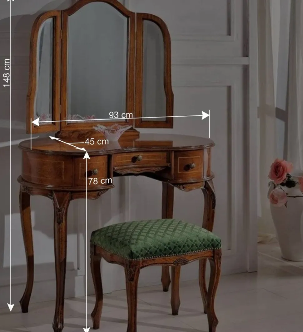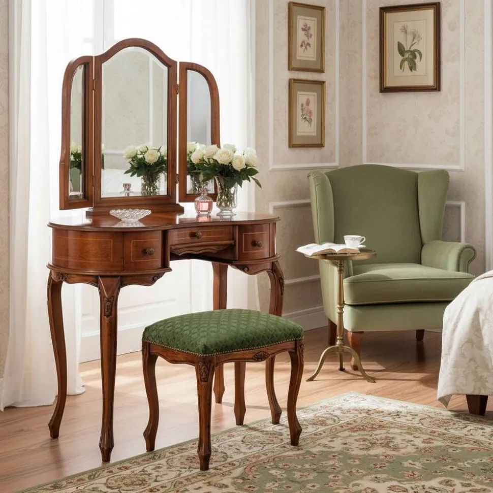 - Hervorragender Schminktisch mit Hocker in Nussbaumfarben und Grün