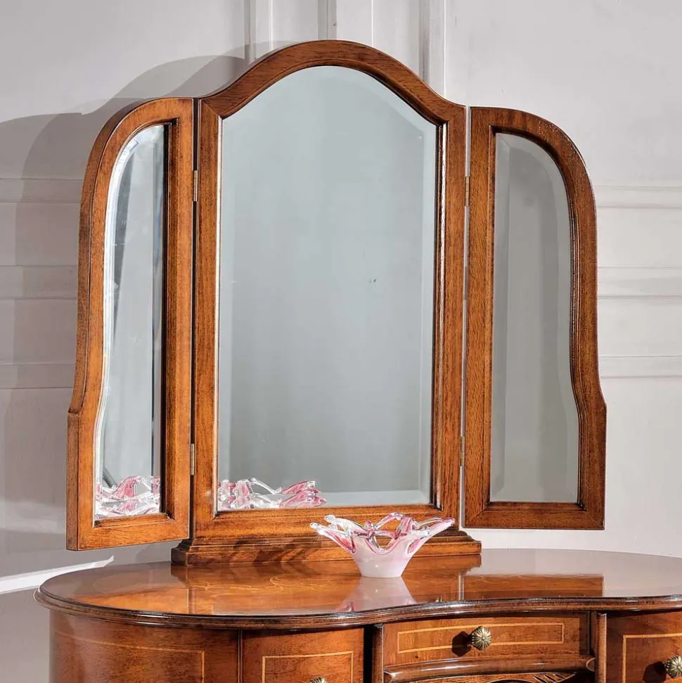 - Mit Stauraum und einem dreigeteilten, aufklappbarem Spiegel mit Scharnieren