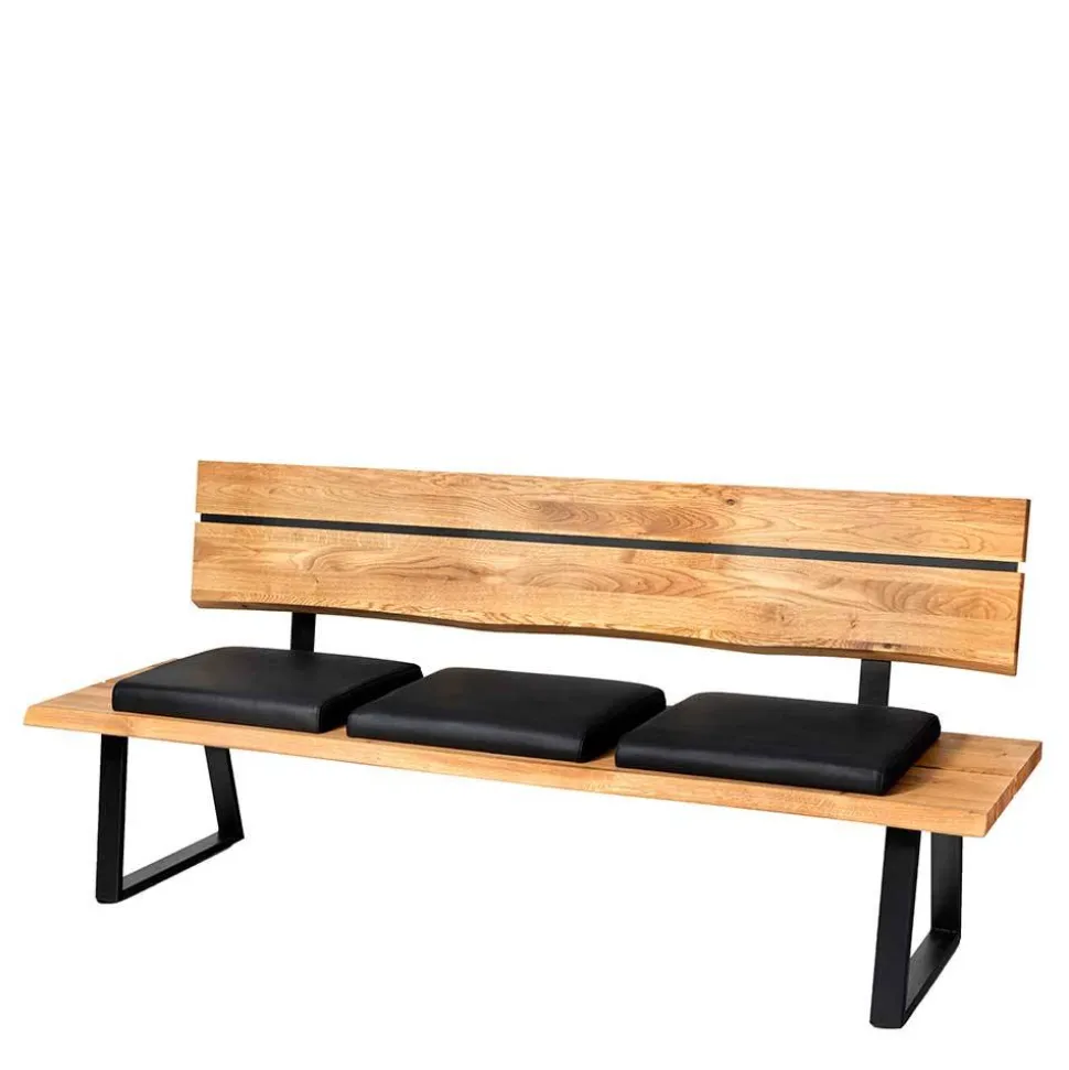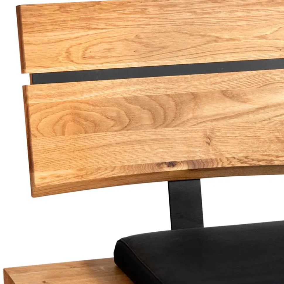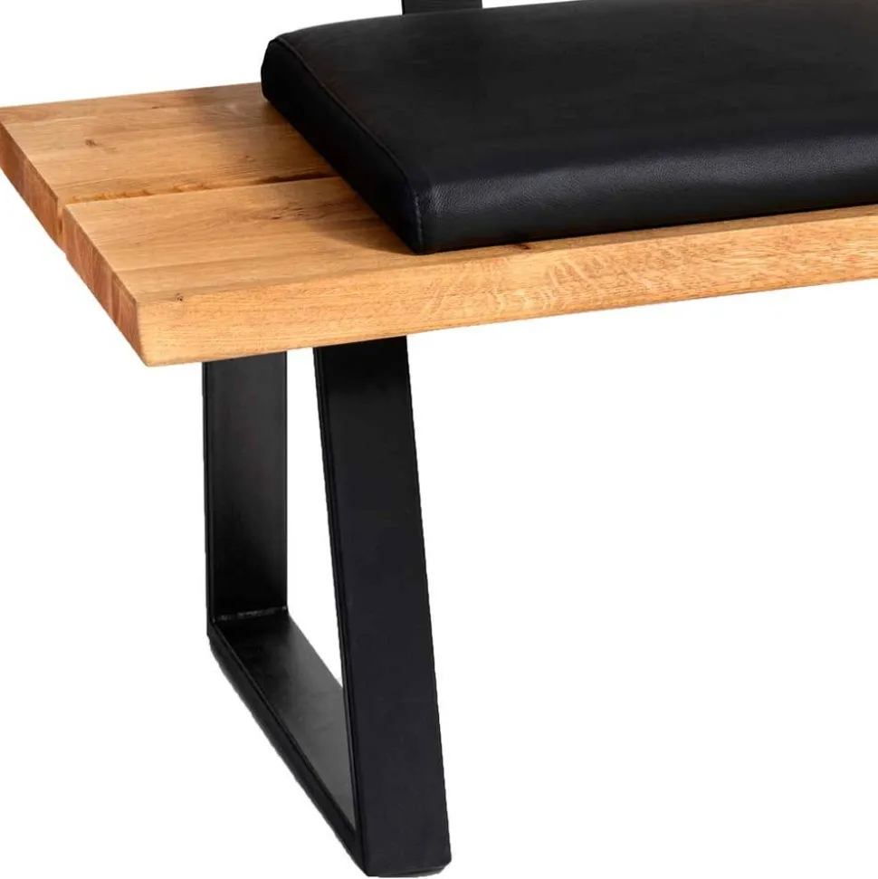 Die Bank „Jessmine“ überzeugt nicht nur durch ihr ansprechendes Äußeres, sondern auch durch die sorgfältige Auswahl der Materialien. Der Bezug besteht aus edlem schwarzen Echtleder, das in Kombination mit einer komfortablen Schaumstoffpolsterung für ein hervorragendes Sitzgefühl sorgt. Das Untergestell aus pulverbeschichtetem Metall in Schwarz garantiert Stabilität und Langlebigkeit. Die Holzoberfläche der Bank ist natürlich geölt, was die Struktur des Massivholzes hervorhebt und die Bank zu einem echten Unikat macht. Die organisch geformte Rückenlehne, die mit einem Hochdrucklaminateinsatz versehen ist, fügt sich harmonisch in das Gesamtbild ein und bietet gleichzeitig optimalen Halt.