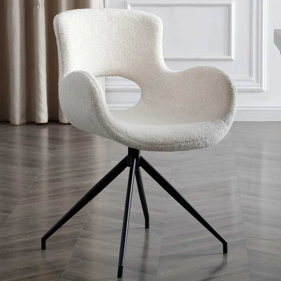 Für die Stuhlbezüge wurde ein weißer Webplüsch aus 100 % Polyester gewählt – ein besonders pflegeleichter und langlebiger Stoff. Polyester überzeugt durch hohe Formbeständigkeit, eine angenehme Haptik und seine Resistenz gegenüber Flecken und Feuchtigkeit. Die Kombination aus edler Optik und praktischen Eigenschaften macht diesen Stoff zur idealen Wahl für vielgenutzte Essbereiche.