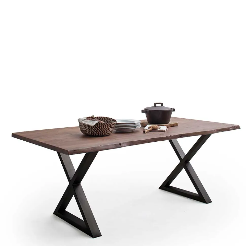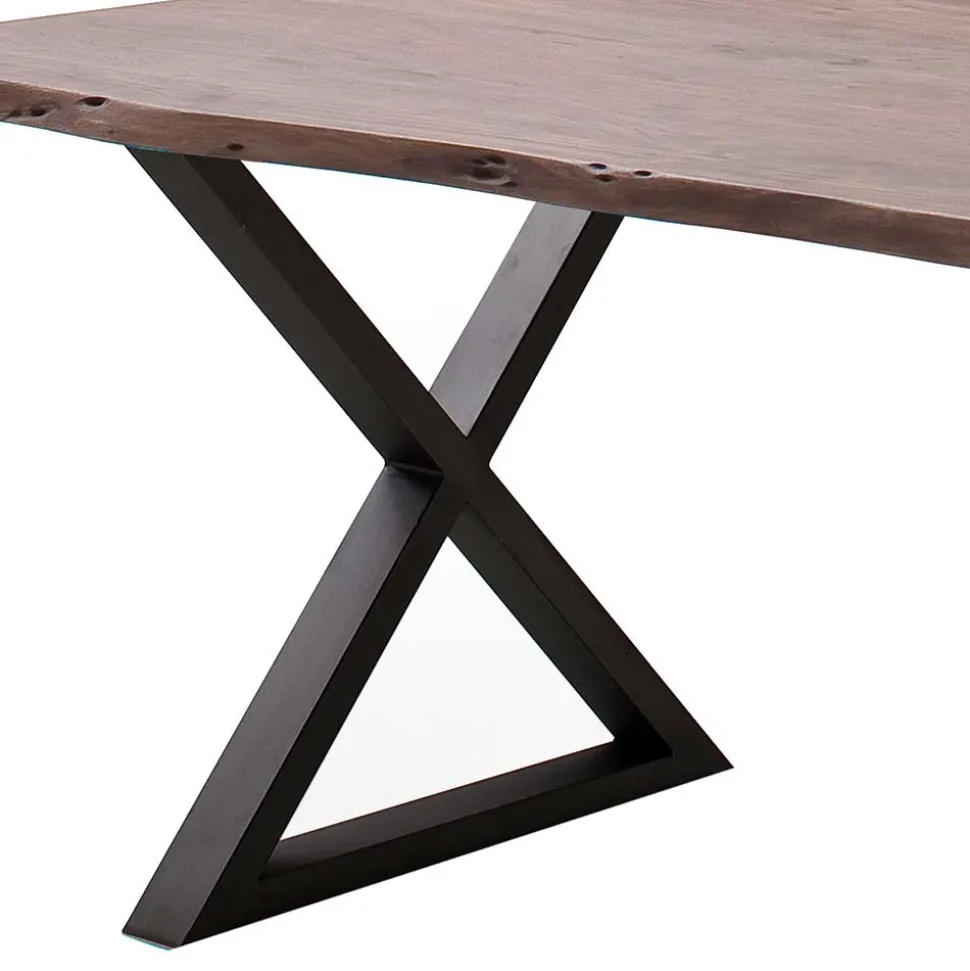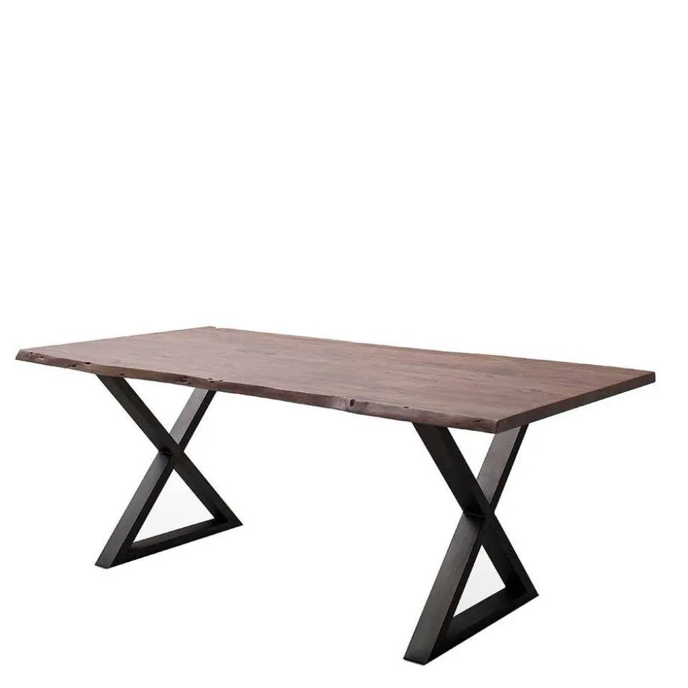 Die Tischplatte des „Geniasan“ besticht durch eine solide Stärke von ca. 3,5 cm und bietet ausreichend Platz für alle Ihre Bedürfnisse. Das anthrazitfarbene X-Gestell aus Metall gewährleistet optimale Standfestigkeit und harmoniert perfekt mit der natürlichen Holzplatte. So verbindet der Tisch Stabilität mit einer ansprechenden Optik.