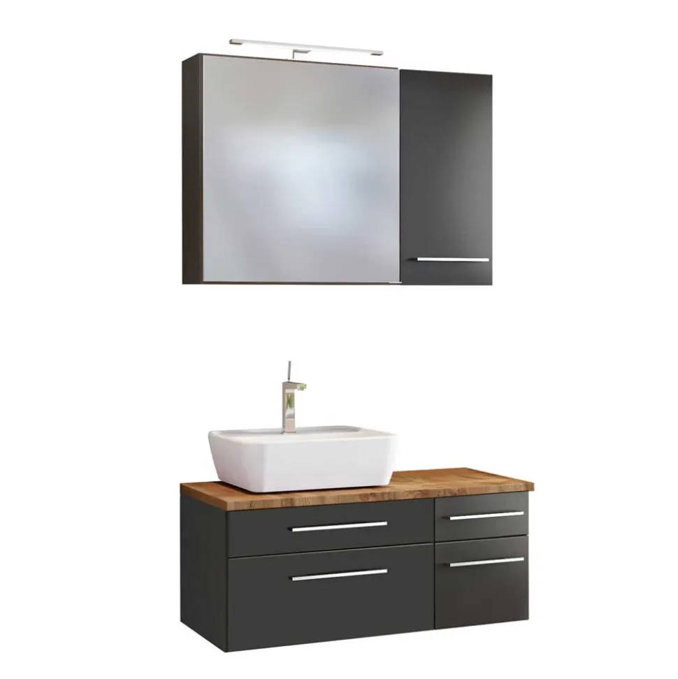 - Modernes Badmöbel Set in dunkel Grau und Wildeichefarben
