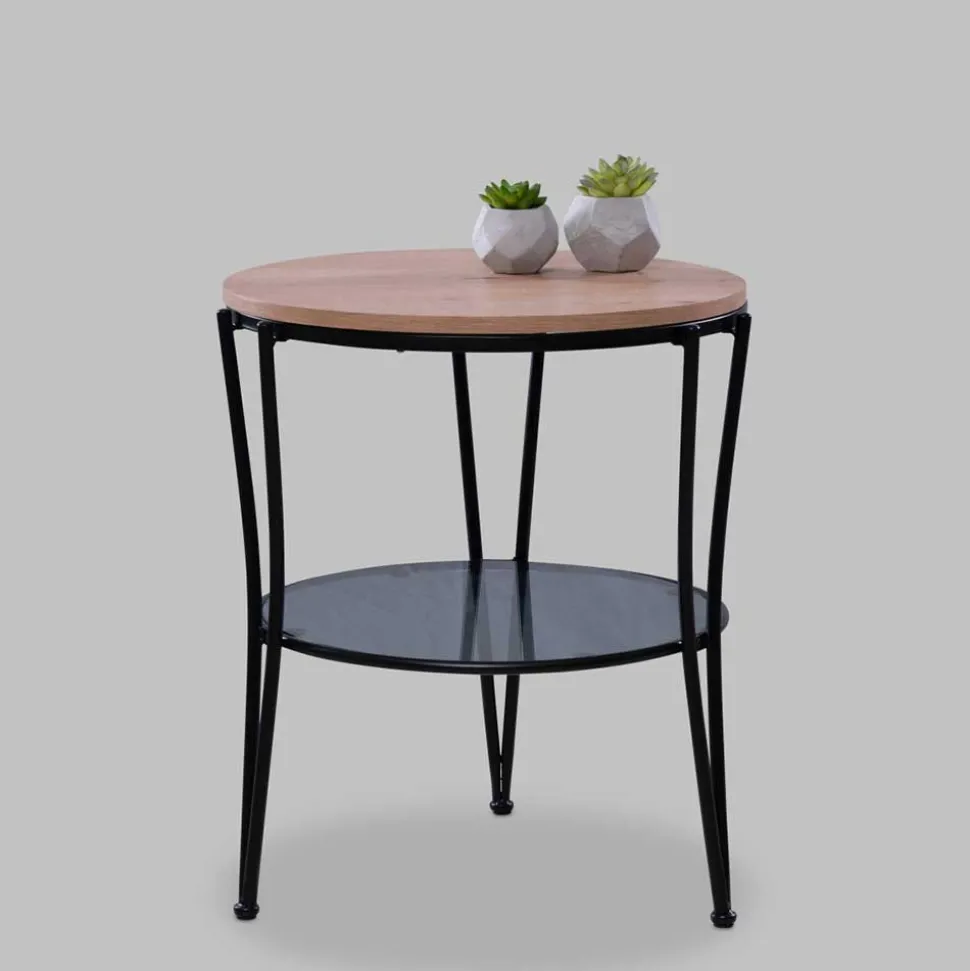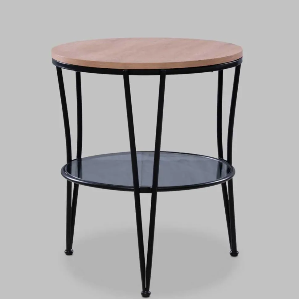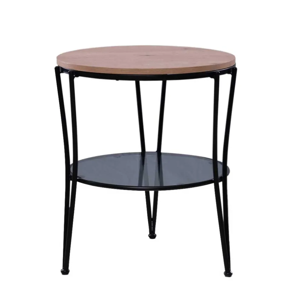 Beistelltisch in Wildeiche mit Glasablage in Grau – Tanoru
