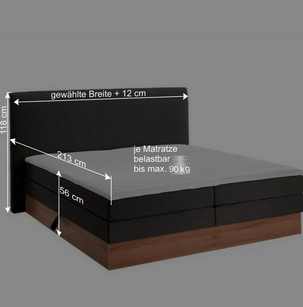 - Attraktives Boxspringbett in Anthrazit und Walnussfarben