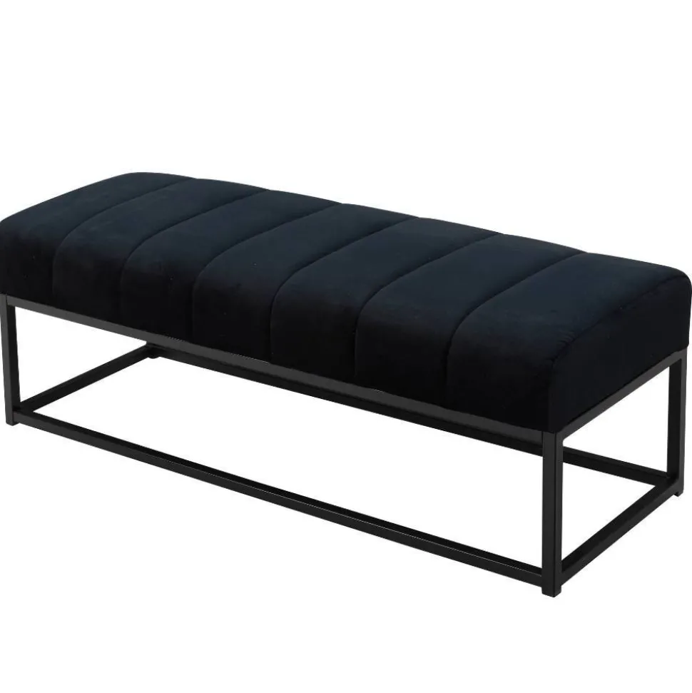 Die Bettbank überzeugt durch erstklassige Materialien, die sowohl optisch als auch haptisch begeistern. Der Bezug aus strapazierfähigem Samt (100 % Polyester) verleiht der Bank eine luxuriöse Ausstrahlung und ist gleichzeitig äußerst pflegeleicht. Für ein bequemes Sitzgefühl sorgt die komfortable Schaumstoffpolsterung, während das robuste Metallbügel-Gestell mit schwarz pulverbeschichteter Oberfläche und integrierten Bodenschonern aus Kunststoff für Stabilität und Schutz Ihres Bodens sorgt. Das gesteppt gestaltete Sitzpolster verleiht dem Design eine zusätzliche ansprechende Note.