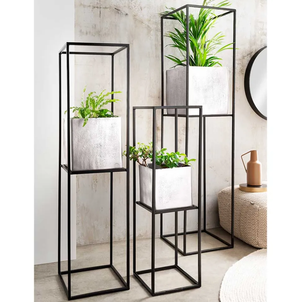 - Repräsentative Blumensäule in Nickelfarben und Schwarz