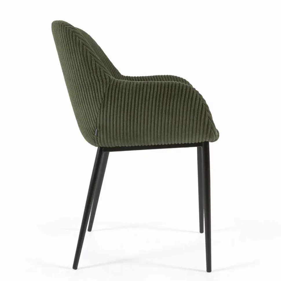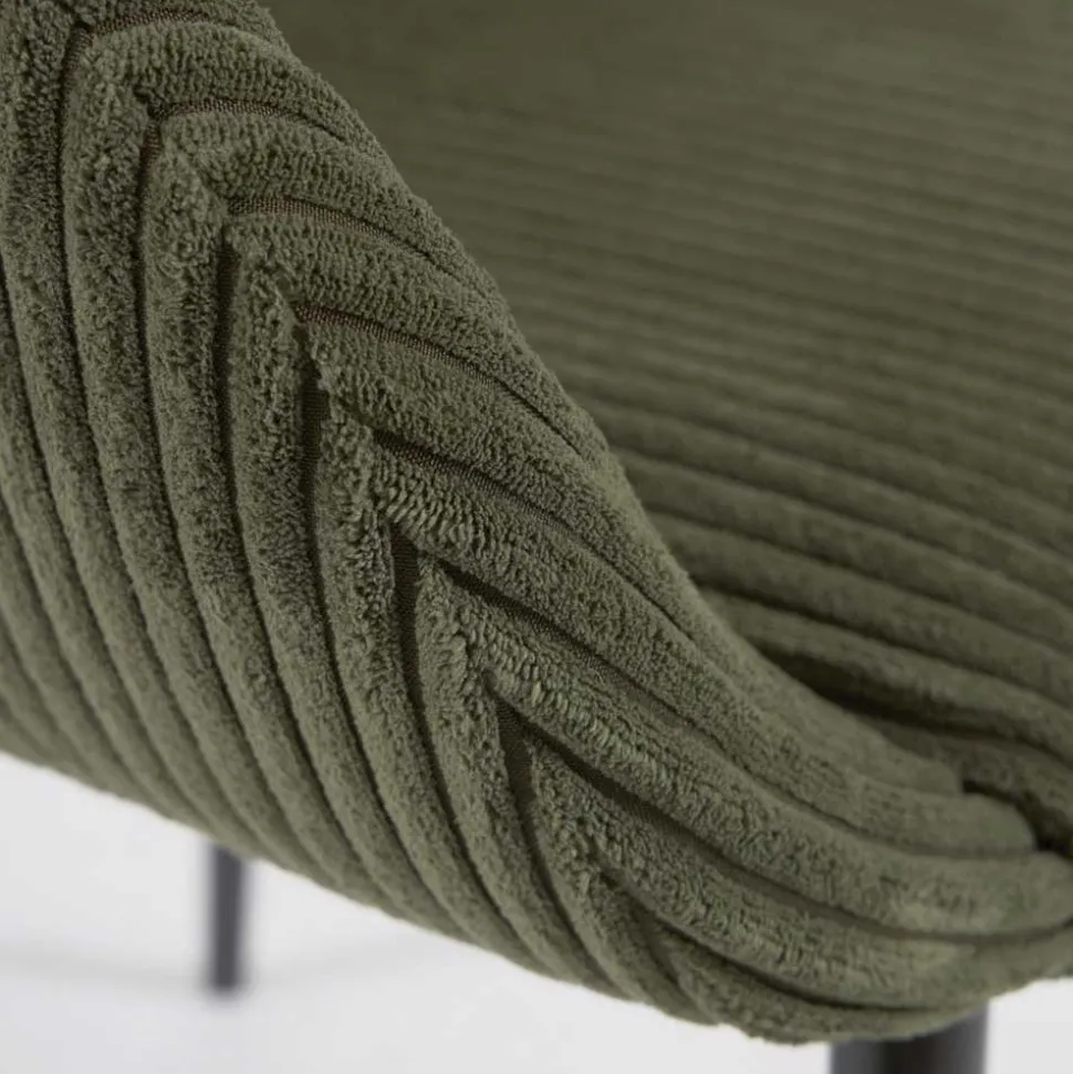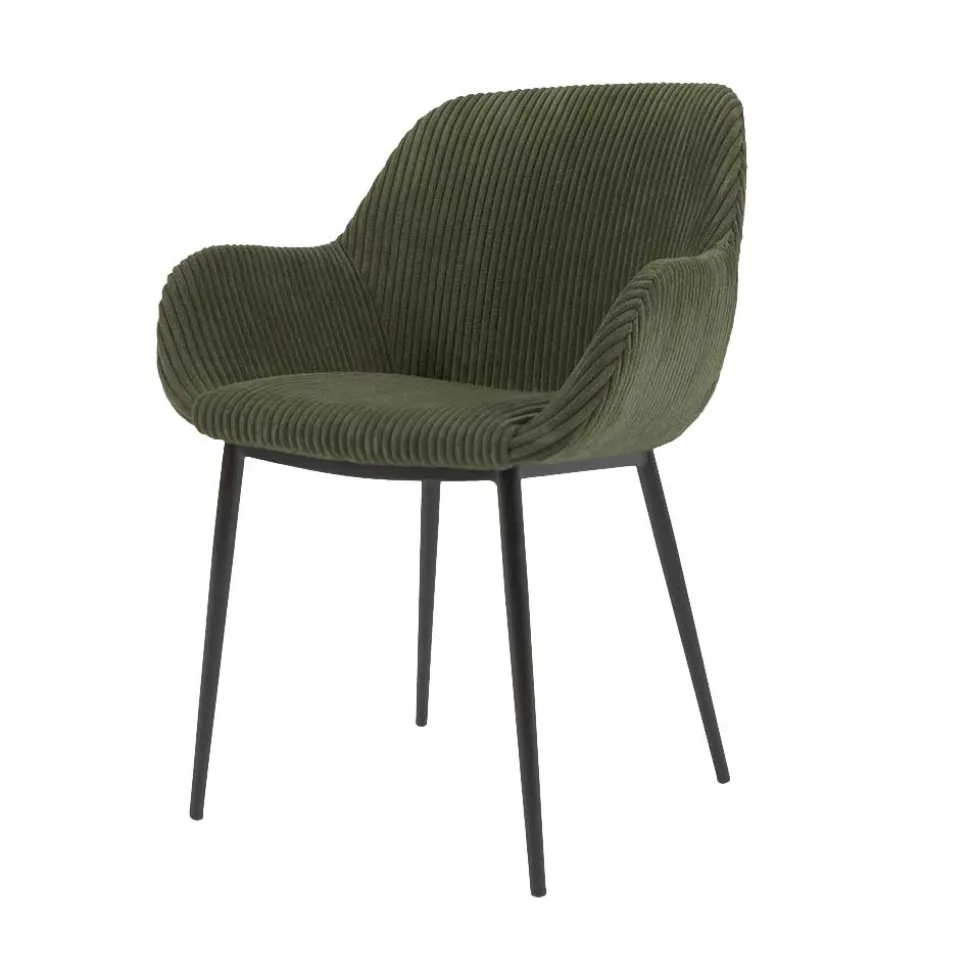 „Rovakis“ ist nicht nur ein Stuhl, sondern eine Einladung zu stilvollem und komfortablem Wohnen. Dieses Möbelstück verkörpert ein neu aufgelegtes Retro-Design, das perfekt in das moderne, junge Ambiente passt. Der dunkelgrüne Cordbezug, hergestellt aus 100 % Polyester, fügt sich nahtlos in jede Einrichtung ein und setzt gleichzeitig einzigartige Akzente.