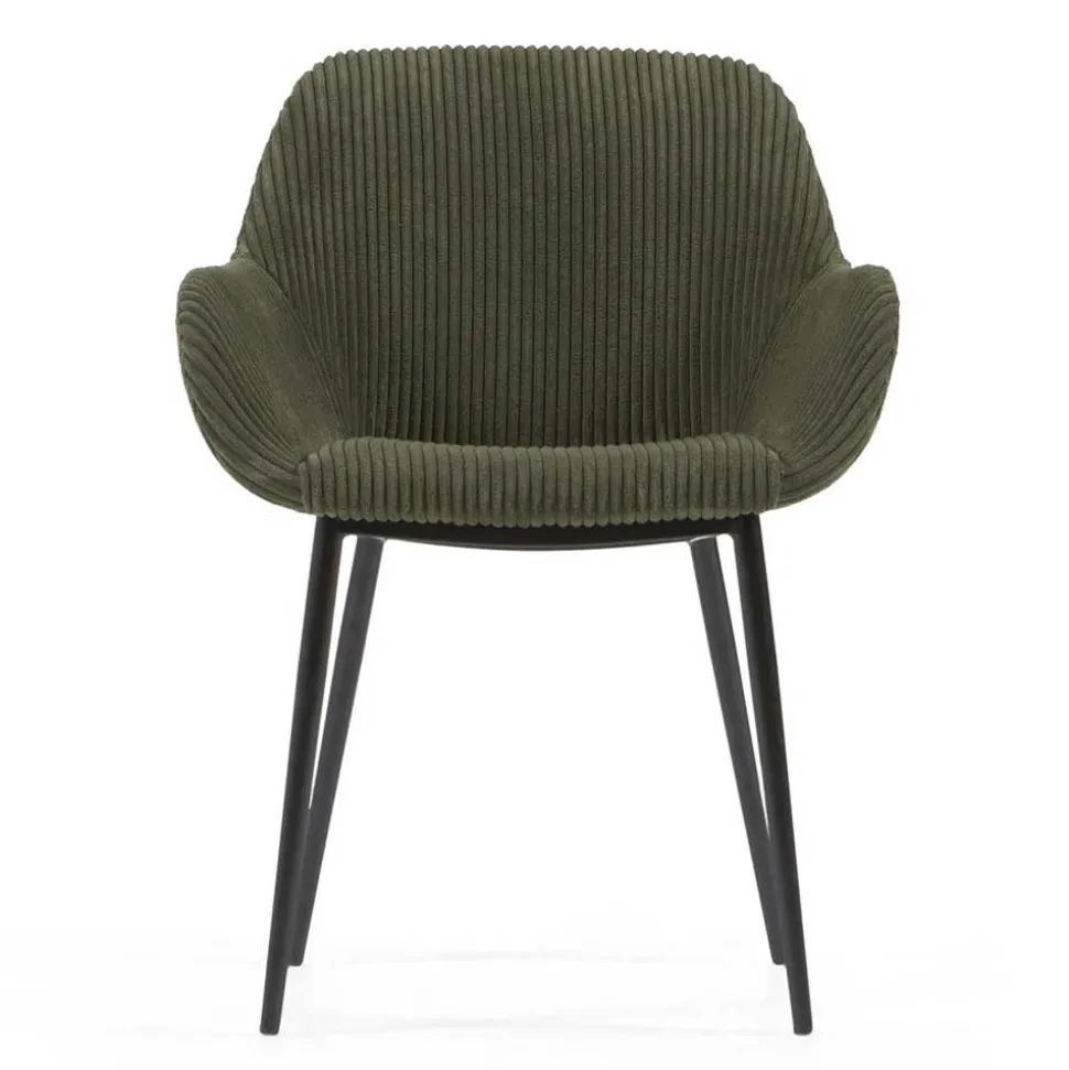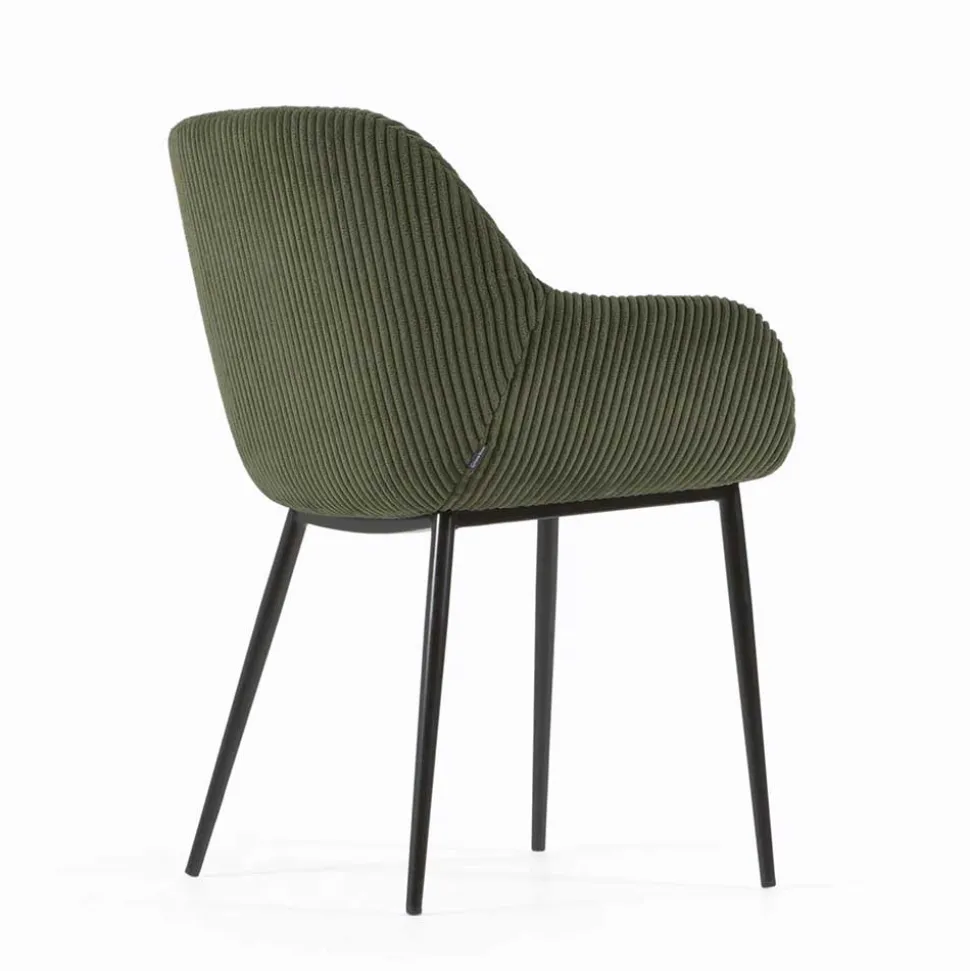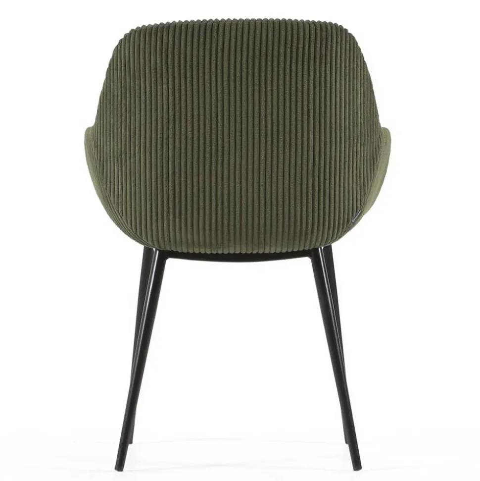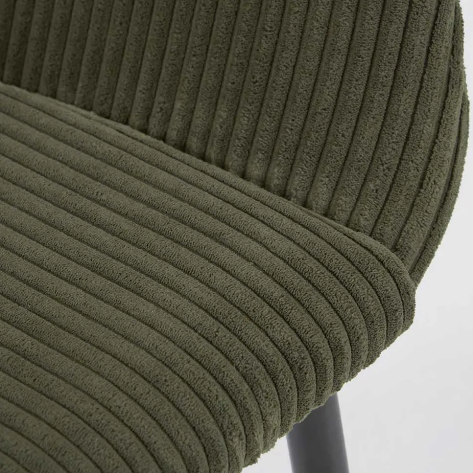 „Rovakis“ ist nicht nur ein Stuhl, sondern eine Einladung zu stilvollem und komfortablem Wohnen. Dieses Möbelstück verkörpert ein neu aufgelegtes Retro-Design, das perfekt in das moderne, junge Ambiente passt. Der dunkelgrüne Cordbezug, hergestellt aus 100 % Polyester, fügt sich nahtlos in jede Einrichtung ein und setzt gleichzeitig einzigartige Akzente.