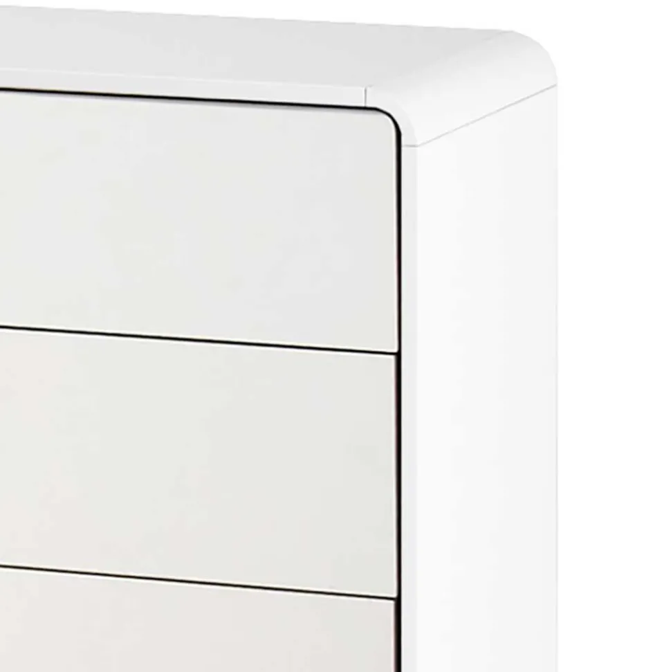 Die Kommode besteht aus einer Kombination aus MDF und Spanplatte, zwei bewährten Materialien, die für Stabilität und eine lange Lebensdauer sorgen. MDF ist besonders formstabil und widerstandsfähig, während die Spanplatte das Möbelstück angenehm leicht macht, ohne an Robustheit einzubüßen. Dank der pflegeleichten, in Weiß folierten Oberflächen bleibt die Kommode auch nach Jahren noch strahlend schön. Ein kurzes Abwischen mit einem feuchten Tuch genügt, um Staub und leichte Verschmutzungen zu entfernen – ideal für einen Haushalt, in dem Sauberkeit und Komfort Hand in Hand gehen.