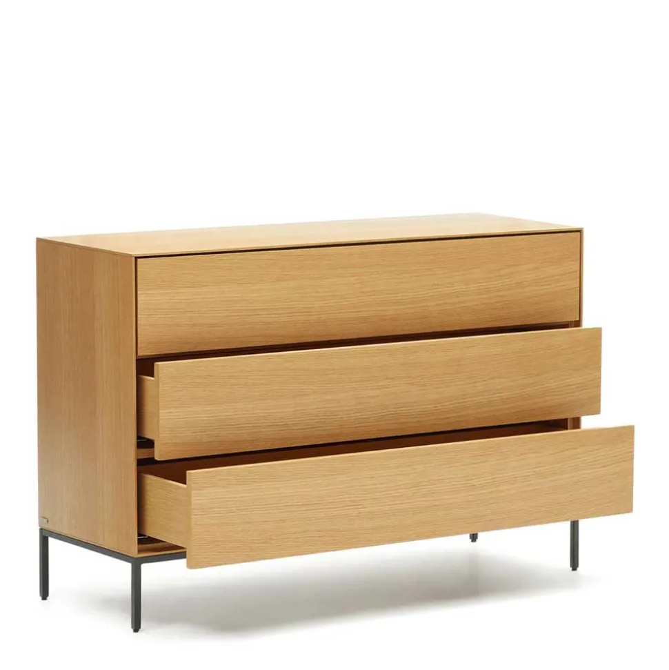 Breite Schubladen-Kommode in Eichefarben – Utperio