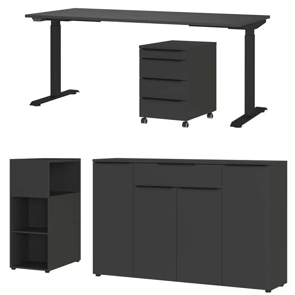Zeitgemäße Eleganz trifft auf klare Linien: Das Büromöbel Set Tila fügt sich mit seiner stilvollen Dunkelgrau-Optik perfekt in jedes Arbeitszimmer ein. Modernes Design bedeutet nicht nur Ästhetik, sondern auch Funktionalität. Hier wird beides meisterhaft kombiniert. Die schlichte und doch markante Gestaltung verleiht Ihrem Arbeitsplatz eine professionelle Ausstrahlung und sorgt gleichzeitig für ein harmonisches Ambiente, das Sie zu Höchstleistungen inspiriert.