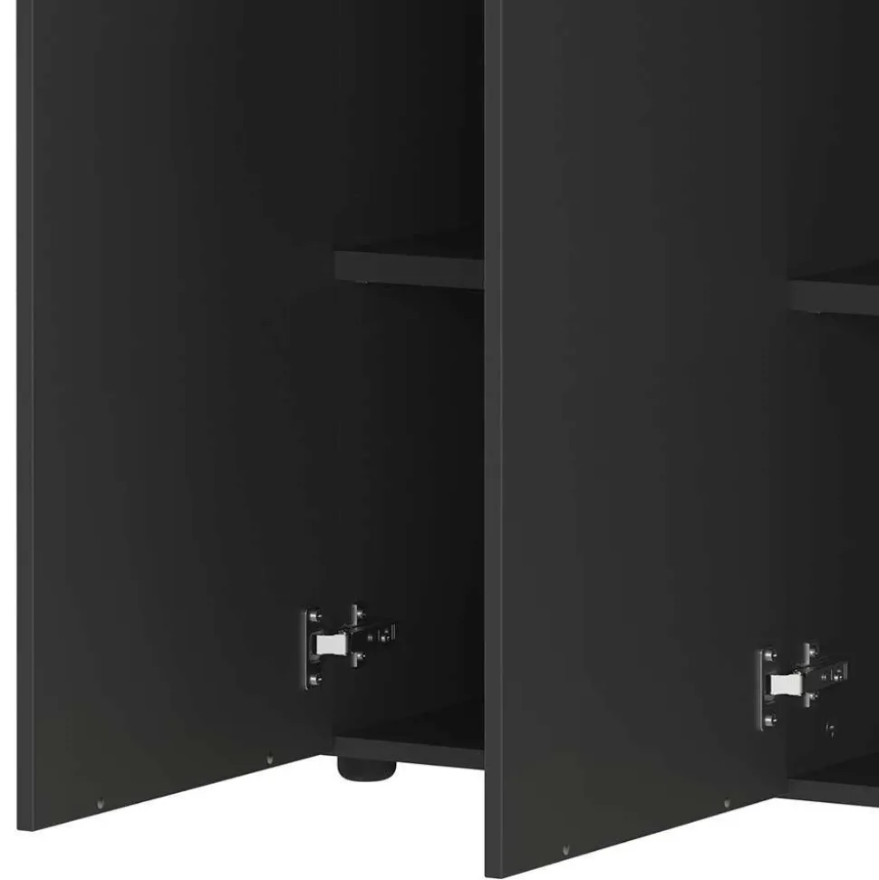 - Vier gedämpfte Türen verbergen fünf individuell verstellbare Einlegeböden, die jeweils bis 10 kg belastbar sind.