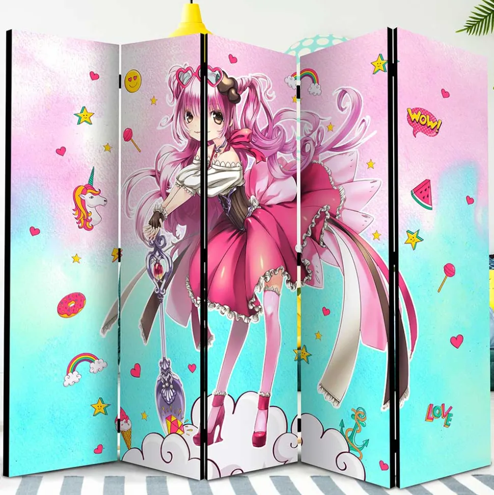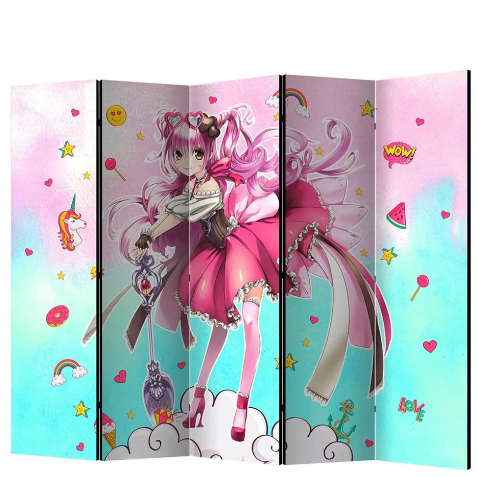 Bunter Paravent mit Manga Mädchen Motiv – Vinales