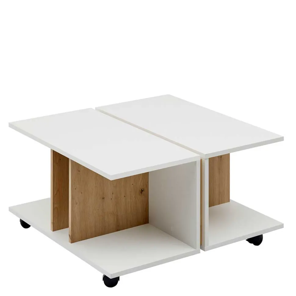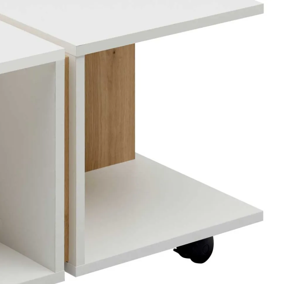 - Pfiffiger Couchtisch in Weiß und Wildeichefarben