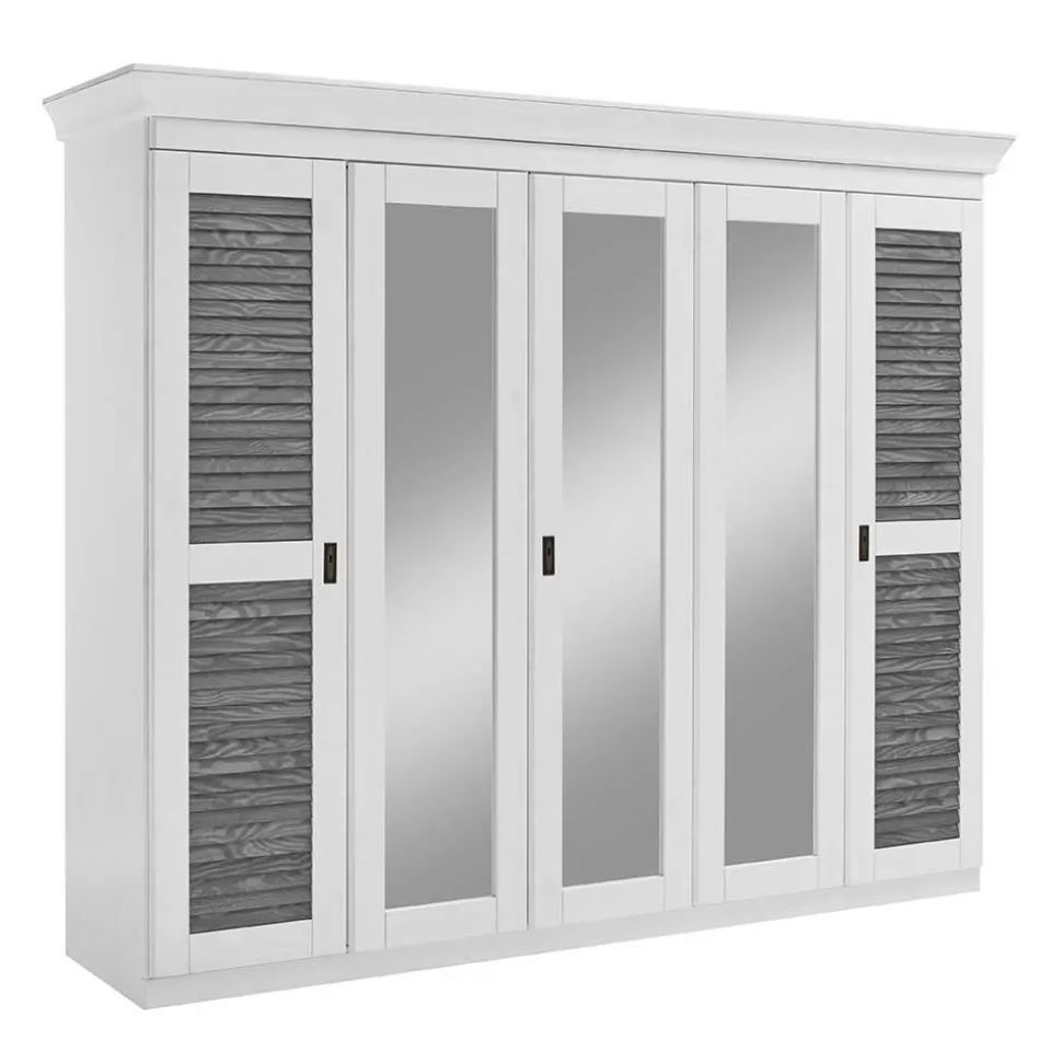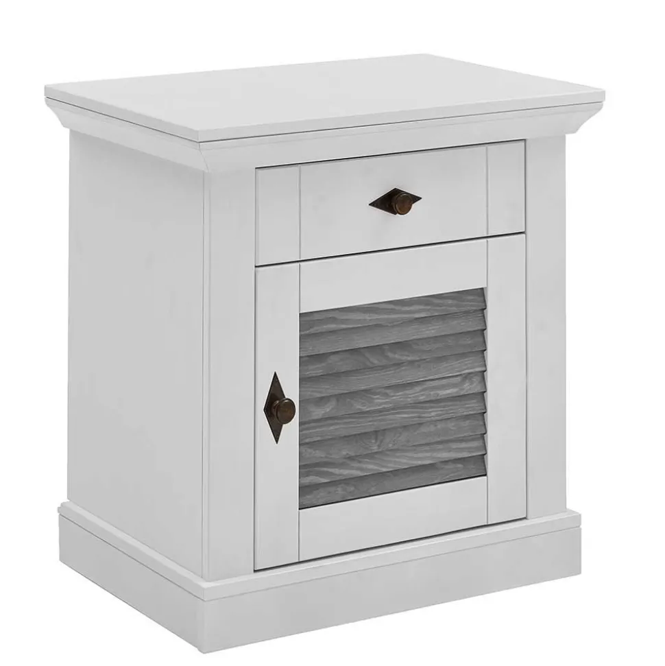 Entfliehen Sie dem Alltag und tauchen Sie ein in eine Welt der Ruhe und Harmonie mit dem Schlafzimmer-Set „Urezzas.“ Im eleganten Landhausstil gehalten, strahlt dieses Set Gemütlichkeit und Wärme aus. Die weißen und grauen lackierten Oberflächen harmonieren wunderbar mit der durchscheinenden Holzmaserung, die eine natürliche Note in Ihr Schlafzimmer bringt.