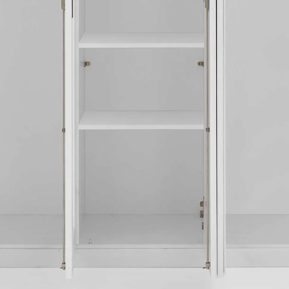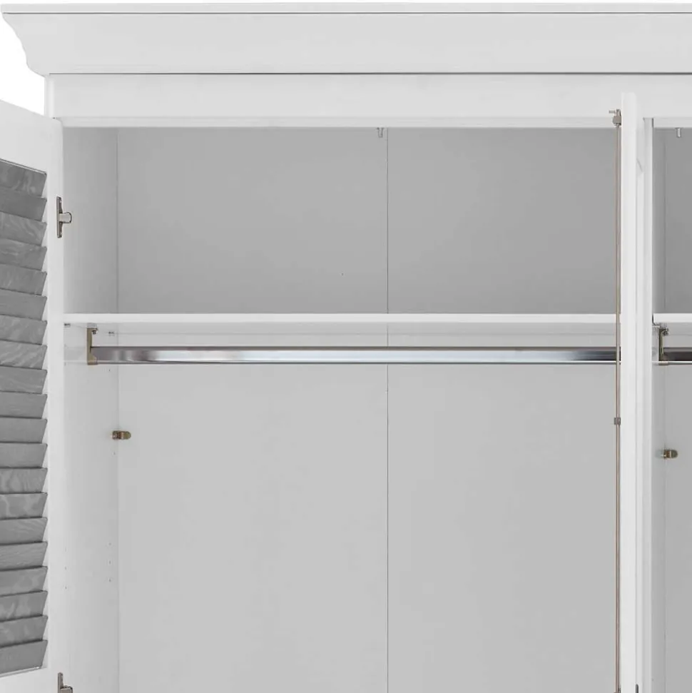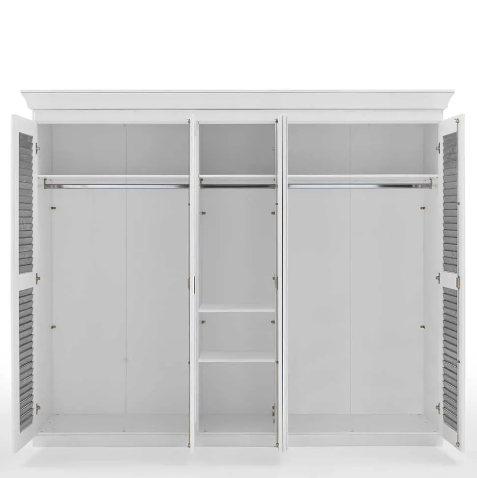 - Drei Fachelemente, jeweils mit einem Einlegeboden und einer Kleiderstange ausgestattet plus mittig zwei zusätzliche Einlegeböden