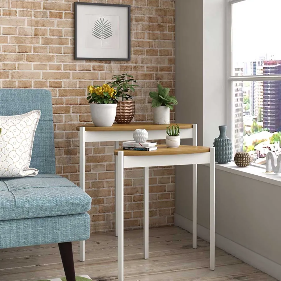 Design Beistelltisch Duo in Walnuss Optik – Procado (zweiteilig)