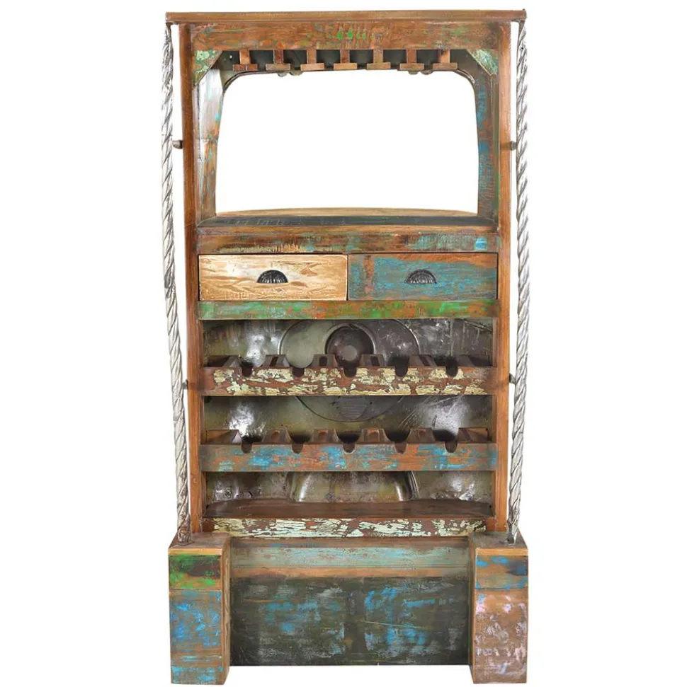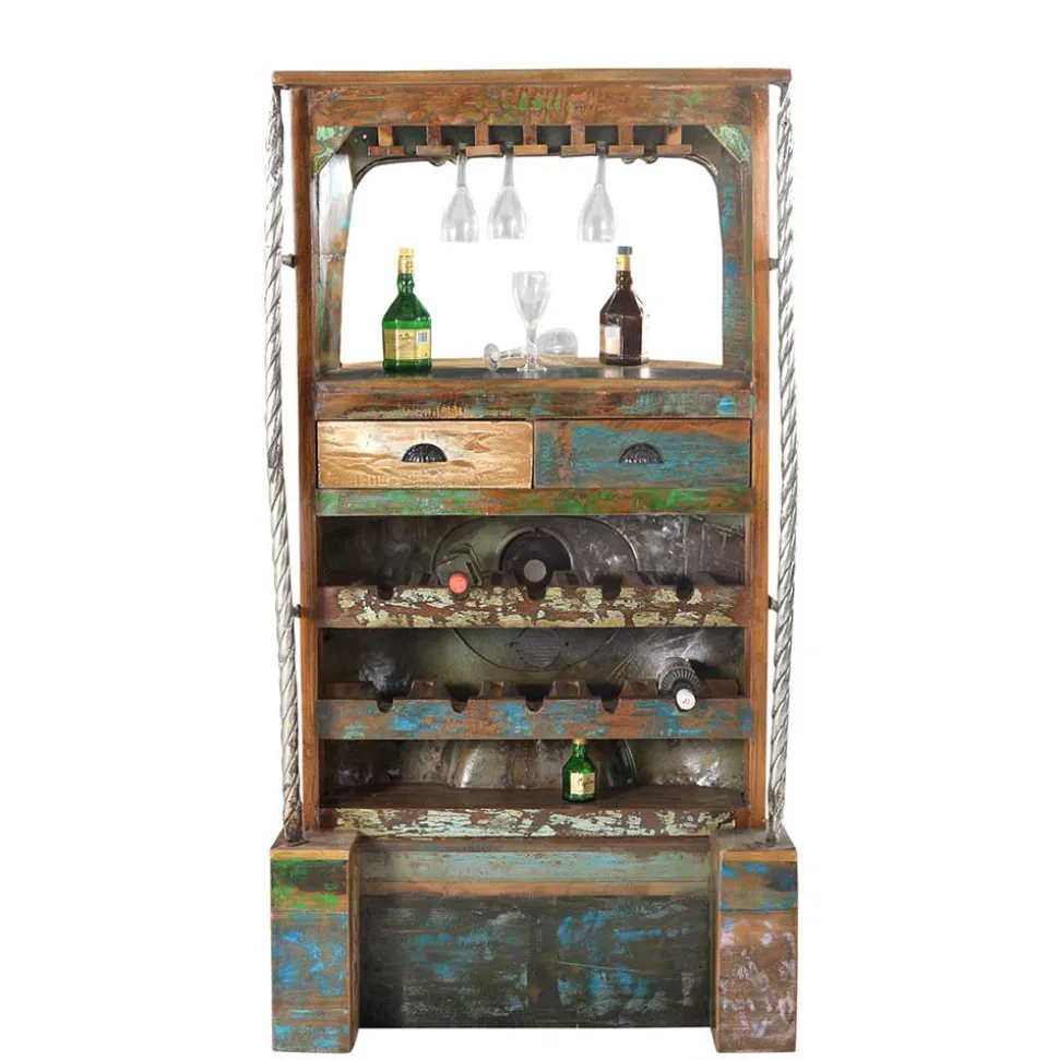 - Bareinteilung hinten aus Altholz, vorne Metallkarosse mit Thekenablage