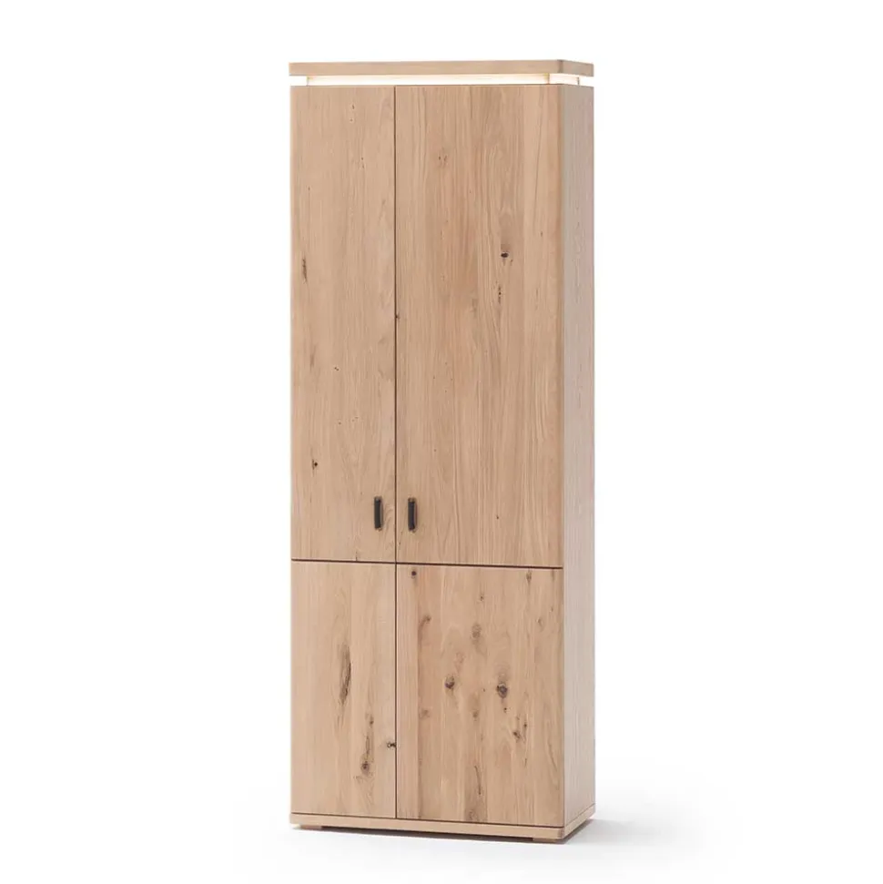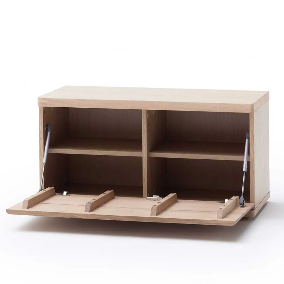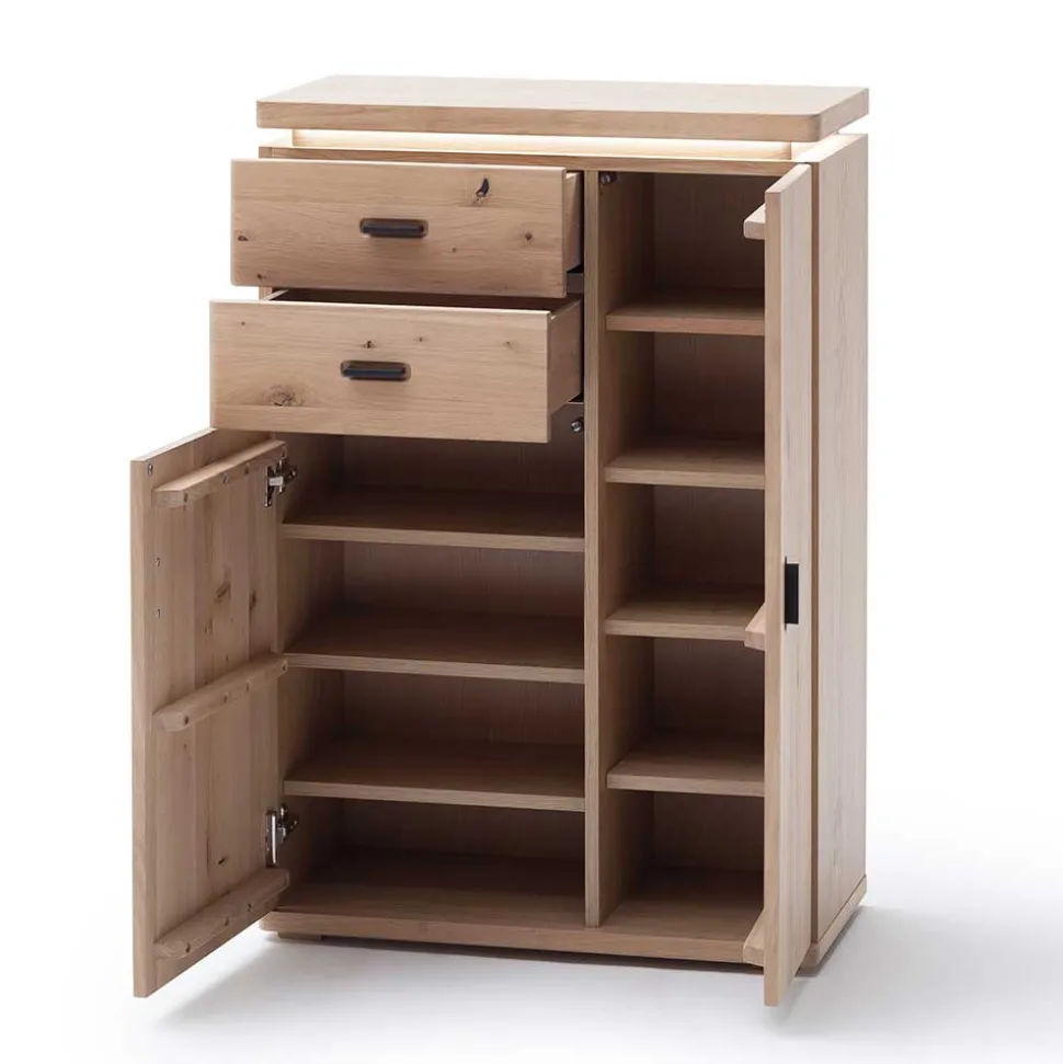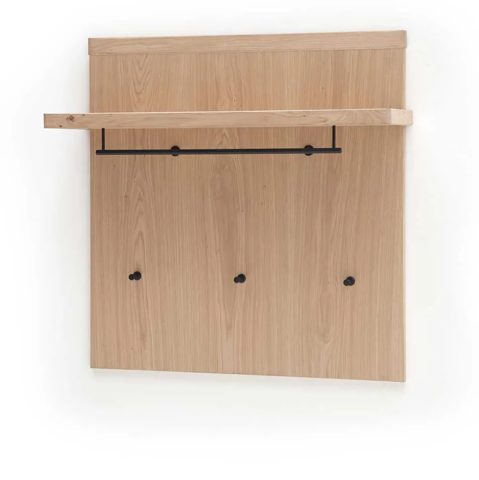 - Aus Spanplatte (Rückwand, Hutablage) und Balkeneiche Massivholz (Blende, Abschluss) gefertigt