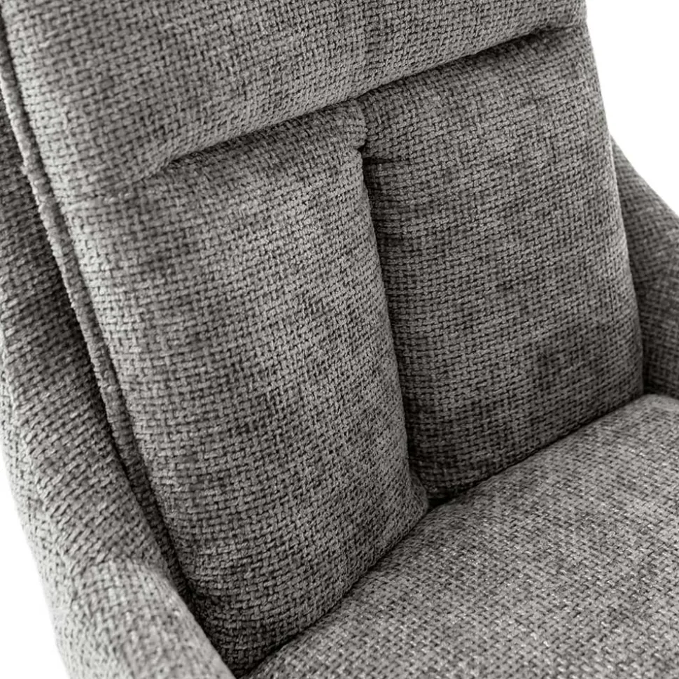 Der anthrazitfarbene Strukturstoff aus 100 % Polyester ist nicht nur optisch ansprechend, sondern auch besonders pflegeleicht. Das Material fühlt sich weich an und ist dennoch strapazierfähig, wodurch der Stuhl auch bei häufiger Nutzung seine Schönheit behält. Ein umlaufender Keder an Sitz- und Rückenfläche setzt stilvolle Akzente und verstärkt die Langlebigkeit des Stuhls.